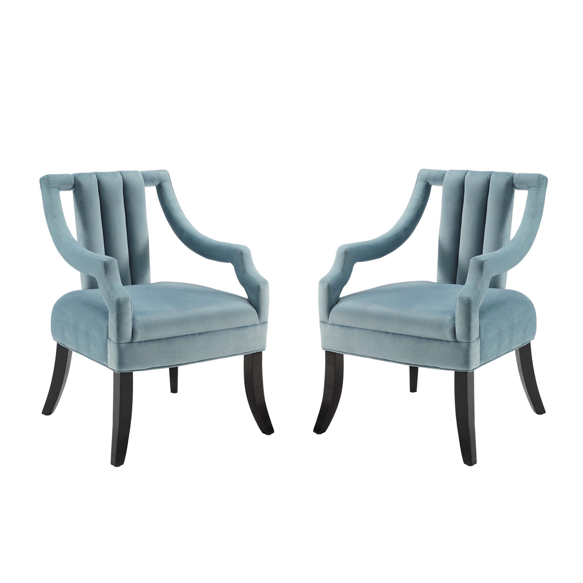 Harken Performance Velvet Accent Chair Set of 2 in Light Blue