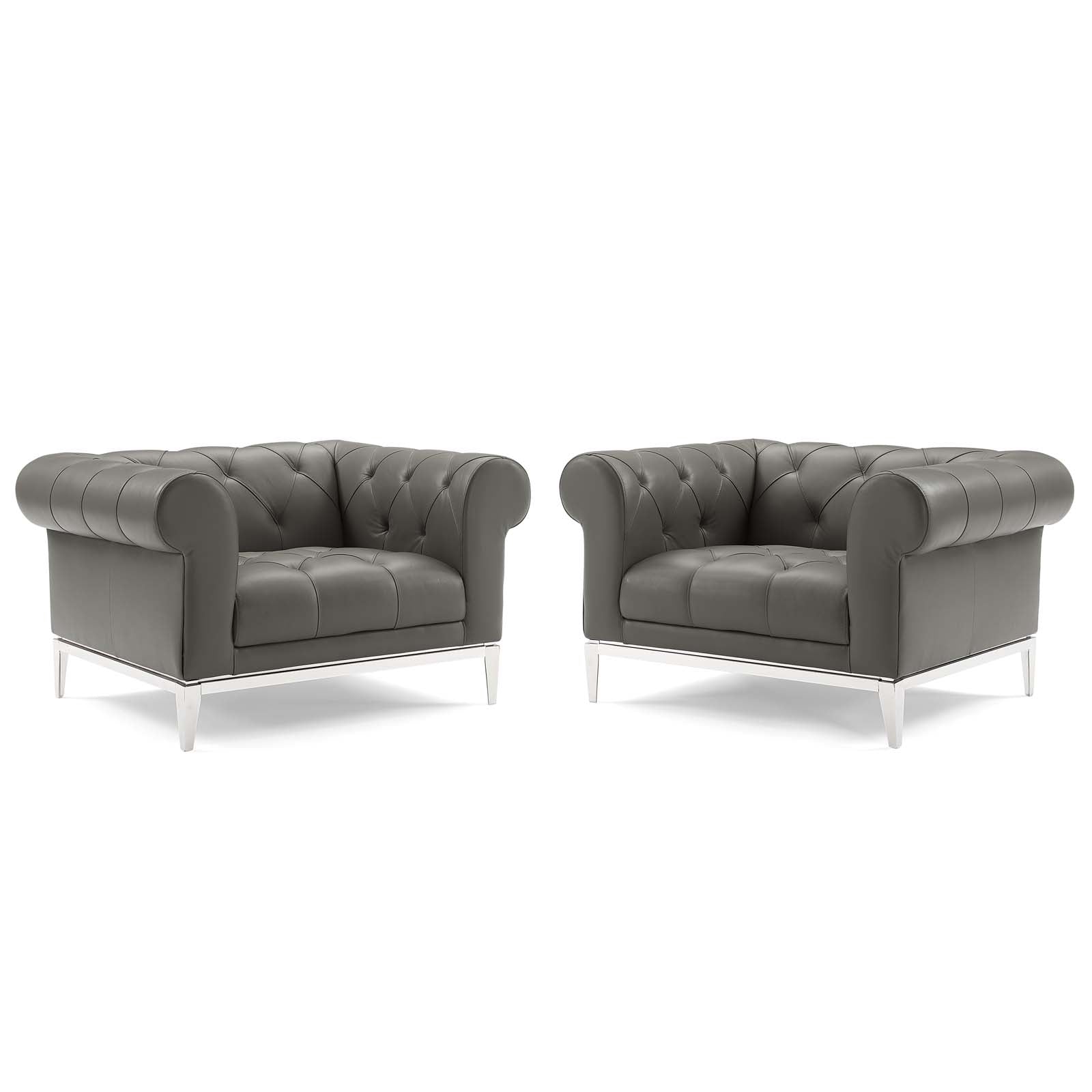 Idyll Tufted Upholstered Leather Armchair Set of 2 in Gray