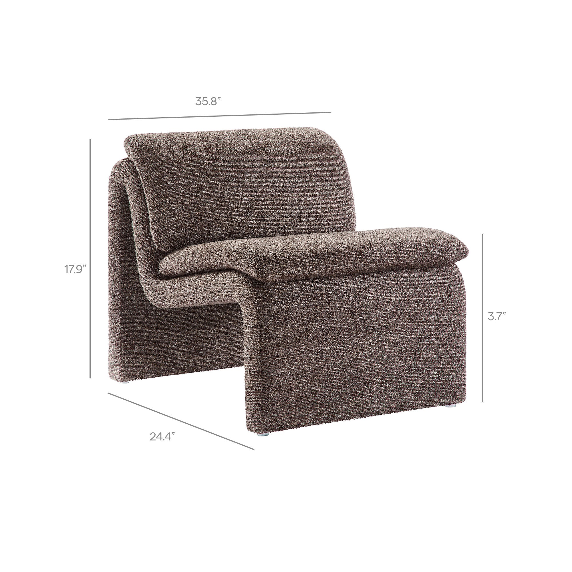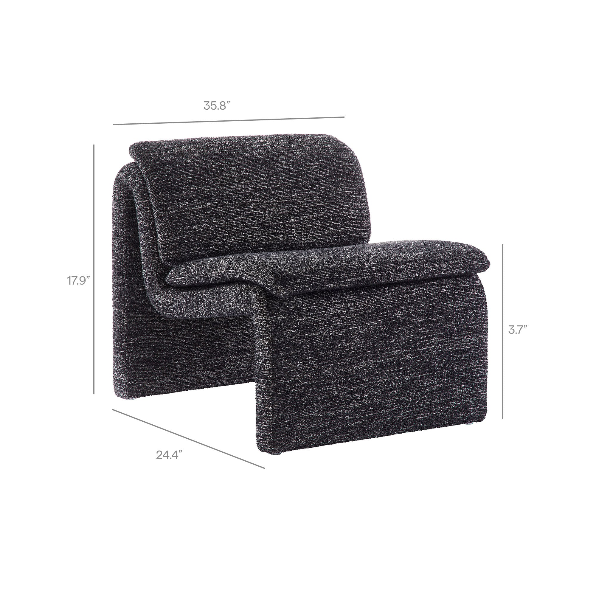The Lume Curved Lounge Chair redefines modern design with its unique, flowing shape that seamlessly blends comfort and style. Upholstered in soft boucle fabric, the Lume armless accent chair features a smooth, undulating form where the backrest, seat, and base flow together in one continuous curve. This eye-catching curvature chair not only stands out in any room but also provides a cozy and supportive seating experience with its padded seat cushion and backrest. Perfect for lounging or creating a stylish reading nook, this boucle chair offers the ultimate in modern comfort. With non-marking floor glides to protect your flooring, this upholstered slipper chair is a versatile addition to living rooms, bedrooms, and even cozy corners. Whether you’re upgrading your living room or adding flair to a bedroom, Lume's bold shape and plush comfort make it a striking piece that enhances any modern interior. Arrives fully assembled. Weight Capacity: 300 lbs.