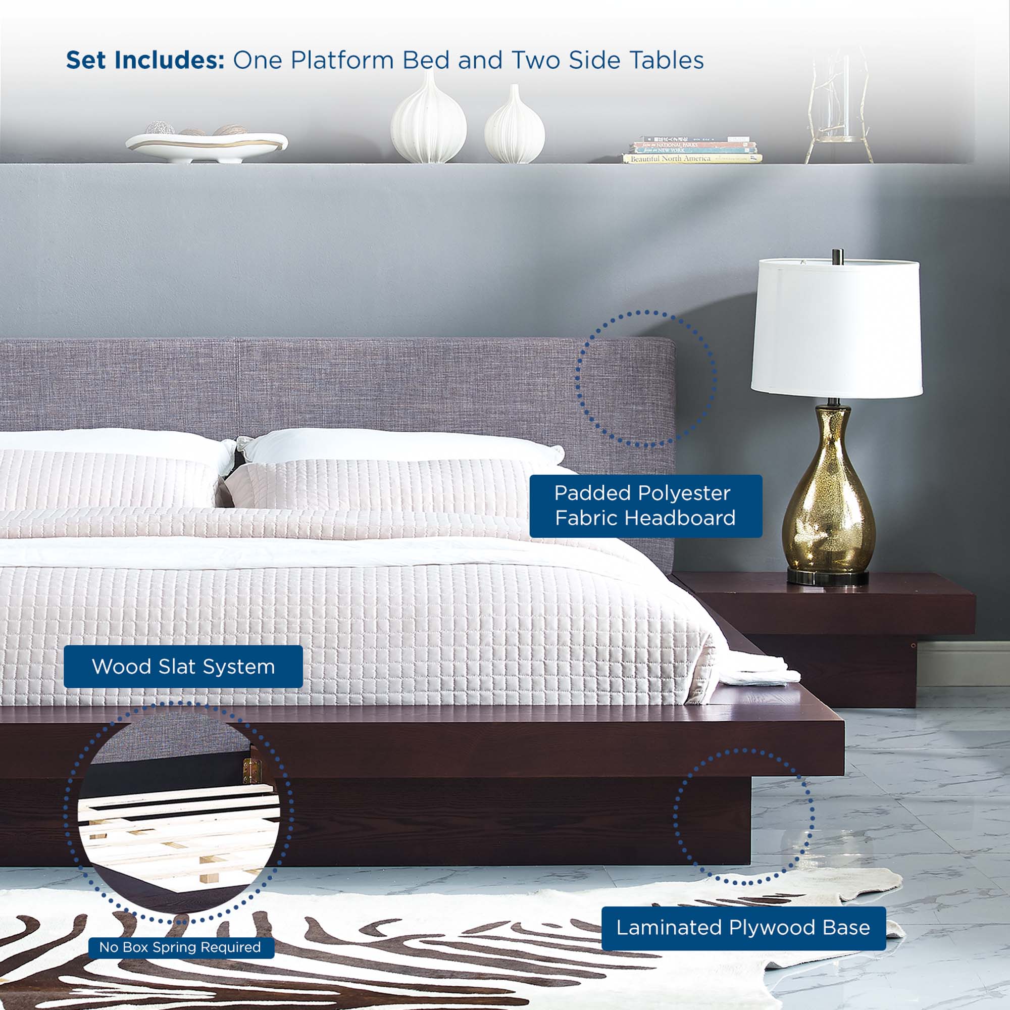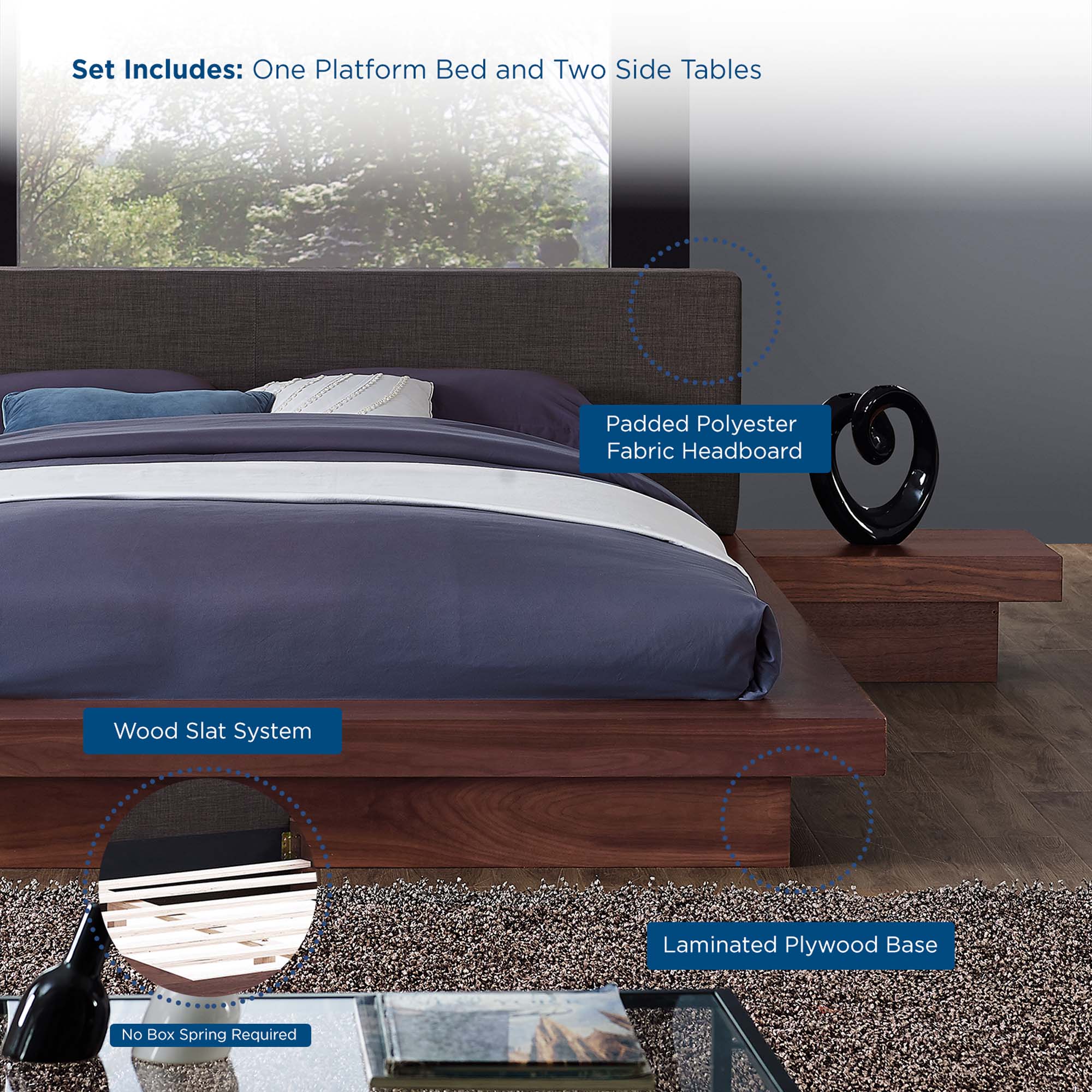 Freja 3 Piece Fabric Queen Bedroom Set in Walnut Gray