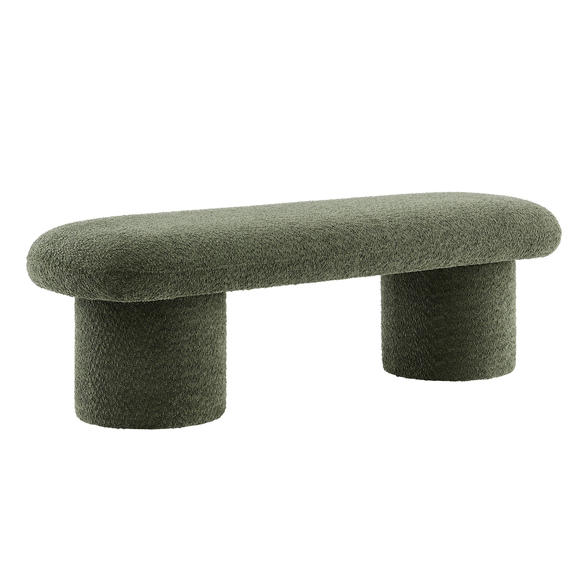 Cozy and chic, the Orla Upholstered Bench adds the perfect finishing touch to any space. Fully wrapped in luxurious, soft chenille fabric, this bench sofa offers a soft yet durable seating experience, perfect for everyday use. The plush seat, padded with dense foam, subtly overhangs its round, wide cylindrical legs, which not only provide strong support but also give the modern bench an eye-catching aesthetic. No matter where you place it, Orla looks stunning—whether as an end of bed ottoman, a modern entryway bench, or as additional seating in the living room. It also works perfectly as window seating, providing a spacious, comfortable spot to relax and take in the view. Equipped with non-marking floor glides, the Orla Bedroom Bench keeps your floors protected while making it easy to move from one room to another. Fully assembled and ready to use, this fabric ottoman bench brings a soft, modern touch to any decor. Weight Capacity: 220 lbs.