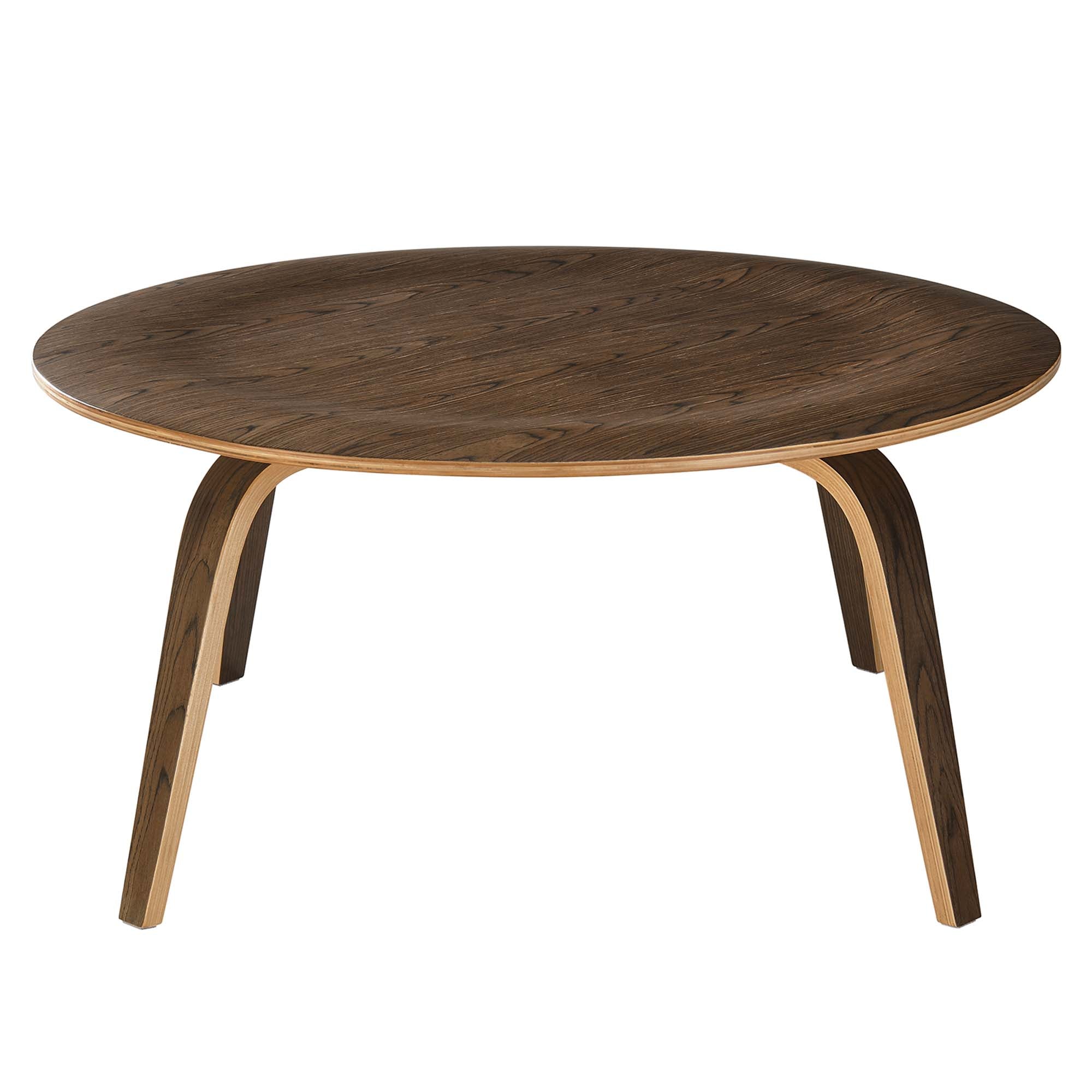 Indulge in the seamless fusion of craftsmanship and utility with the Fathom Coffee Table. Crafted from durable plywood, this mid-century coffee table exhibits graceful modern curves that represent a fusion of functional design and aesthetic allure, all meticulously finished with a stylish wood grain veneer. Fitted with fabric foot pads that are anti-skid, the Fathom round coffee table not only ensures stability but also safeguards your floors with care. With its organic shape, this simplistic coffee table is supported by durable, splayed legs for a firm and robust build. Ready to complement any space including the living room, lounge area, or office reception space, the Fathom Wood Coffee Table is poised to deliver a blend of convenience and mid-century modern style. Assembly required. Weight Capacity: 330 lbs