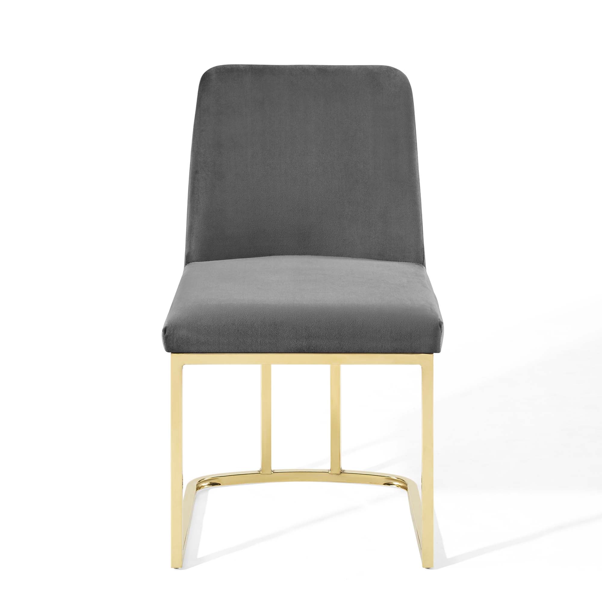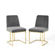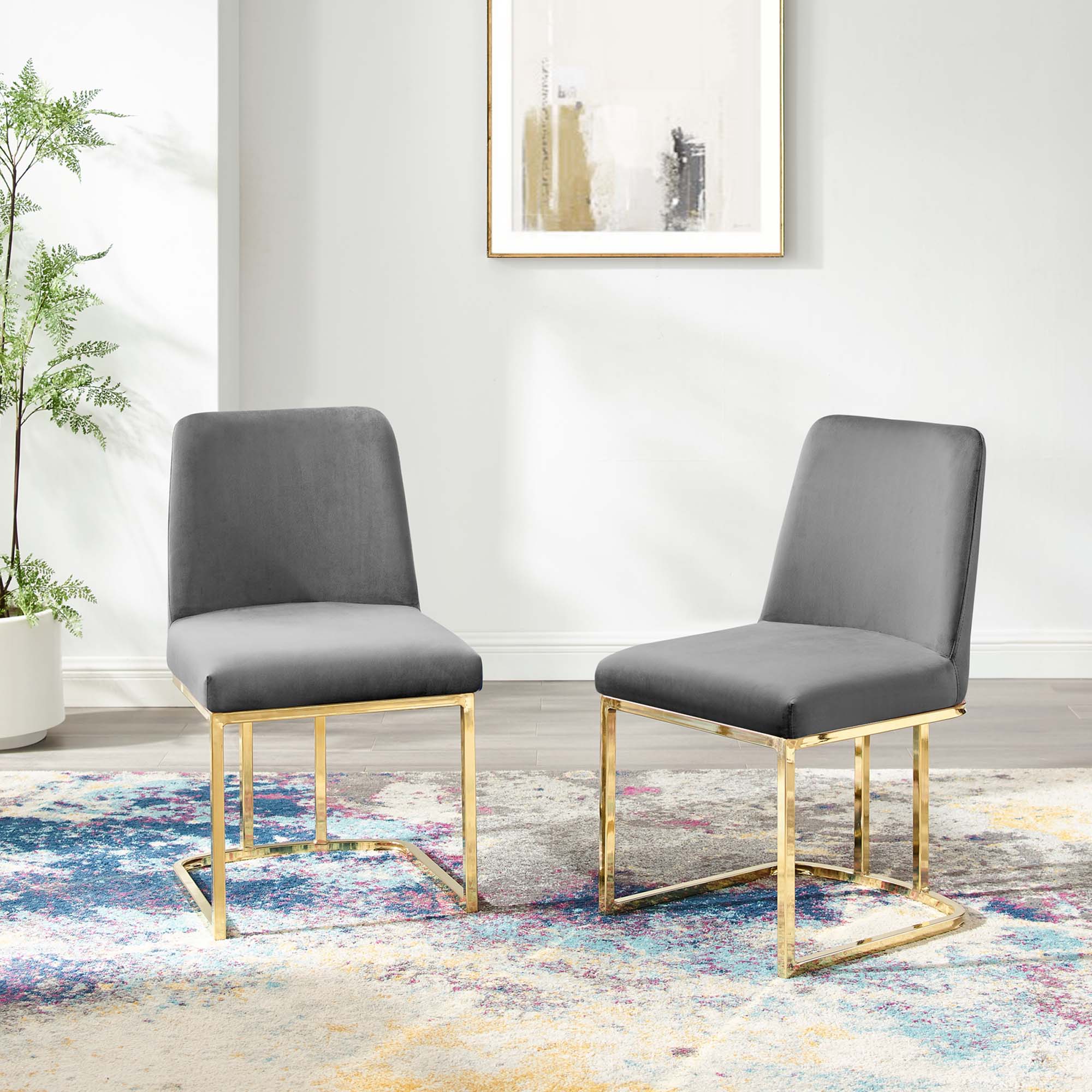 Amplify Sled Base Performance Velvet Dining Chairs Set of 2 in Gold Gray