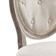 Revel in the whispered opulence of the Arise Dining Side Chair. Featuring a fluted wood frame, button tufted diamond trim, elegant welting, dense foam padding, an upholstered fabric seat, this oval back dining or accent chair elegantly blends old world charm with modern intrigue. Designed with a weathered vintage French look and an undeniable appeal, Arise supports up to 331 pounds and comes with foot pads to preserve flooring. Comes fully assembled.