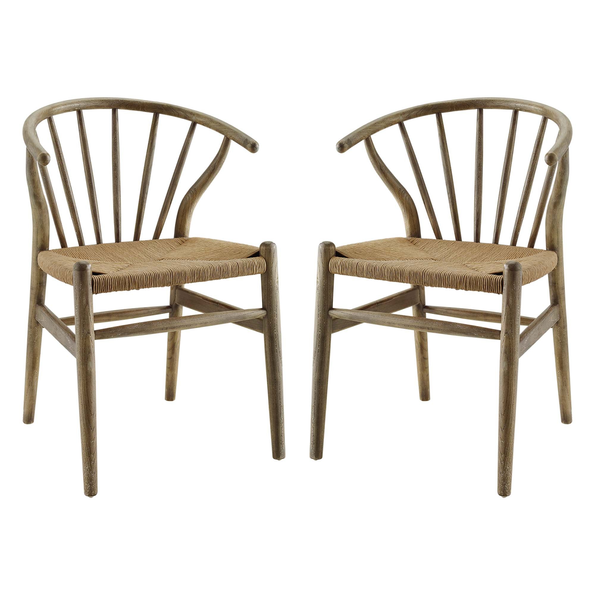 Bring Scandinavian style to your dining space with the Flourish Dining Side Chair Set of 2. Featuring a sweeping curved back, tapered wood legs, and classic spindles, the modern farmhouse design of this dining chair gets a contemporary update with delicate craftsmanship and stylish detail. The seat is made of paper rope, a new twine that is soft, anti-static and durable, while providing beautiful contrast and a soft texture. Complete with a solid wood frame and support rods make this piece a lasting choice for the dining room, kitchen table, or living area. Complement a variety of décor settings from mid-century to contemporary modern with this wood dining chair set. Weight Capacity: 286 lbs
