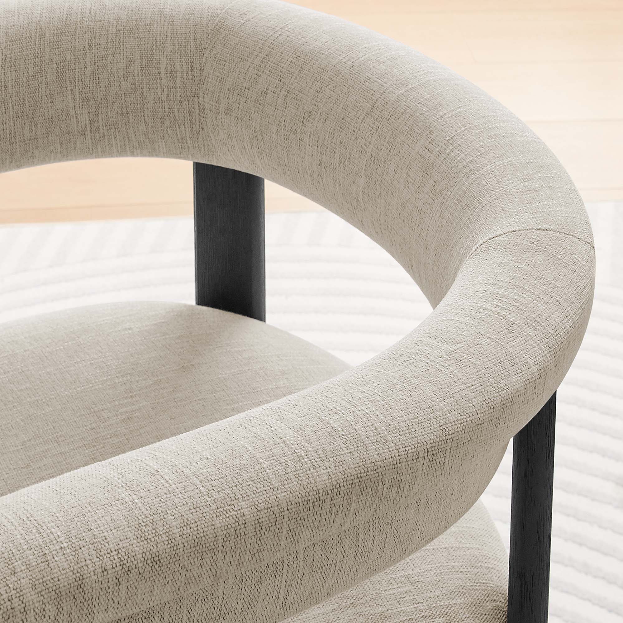 Feel the exquisite combination of modern chic and ultimate comfort with the Imogen Fabric Dining Chair Set of 2. These contemporary dining chairs feature a unique barrel back silhouette that cradles you in luxury with its curved backrest and open design, offering both support and style. The foundation of each dining room armchair is built on sturdy wood legs, for durability and strength to accompany its aesthetic appeal. The seats and backrests, constructed from high-quality plywood, are enveloped in a dense layer of foam and fabric upholstery, creating an inviting look that beckons you to sit and relax well after you've finished eating. The fixed seat and cushion design provide a seamless, clean look that complements any dining table with grace. These curved back dining chairs are equipped with non-marking plastic foot pins, protecting your flooring. Perfectly suited as an accent chair or part of your kitchen & dining room ensemble, this set of two rounded back dining chairs seamlessly integrates with a variety of decor themes, from modern farmhouse to contemporary and minimalist aesthetics. Easy to assemble and designed with the modern home in mind, the Imogen barrel chair set is not only a practical addition to your home but also a reflection of sophisticated taste. Dining Side Chair Weight Capacity: 331 lbs