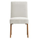 Add comfort and style to your home with Lyra Boucle Fabric Dining Side Chairs - Set of 2. These dining chairs are chic and luxurious, featuring a relaxed design with a subtly angled backrest. Lyra comes upholstered in boucle fabric, creating a comfortable resting spot where you can enjoy a meal or sip on a glass of wine. Featuring a sturdy plywood frame, inverted V-shaped rubberwood legs, and dense foam padding, these modern dining room chairs provide stability while enhancing the dining room, bedroom or entryway. Includes non-marking feet. Assembly Required. Weight Capacity: 331 lbs.