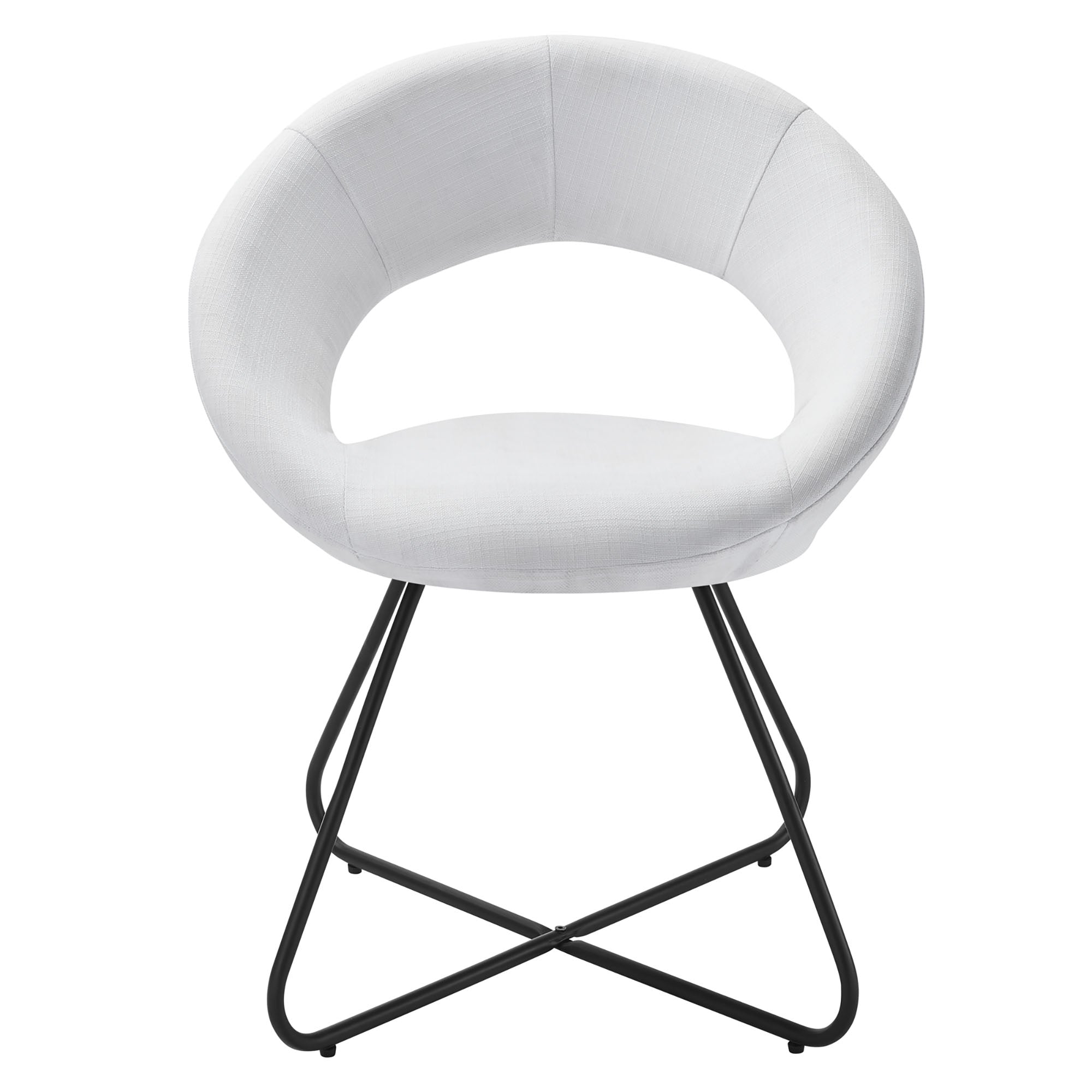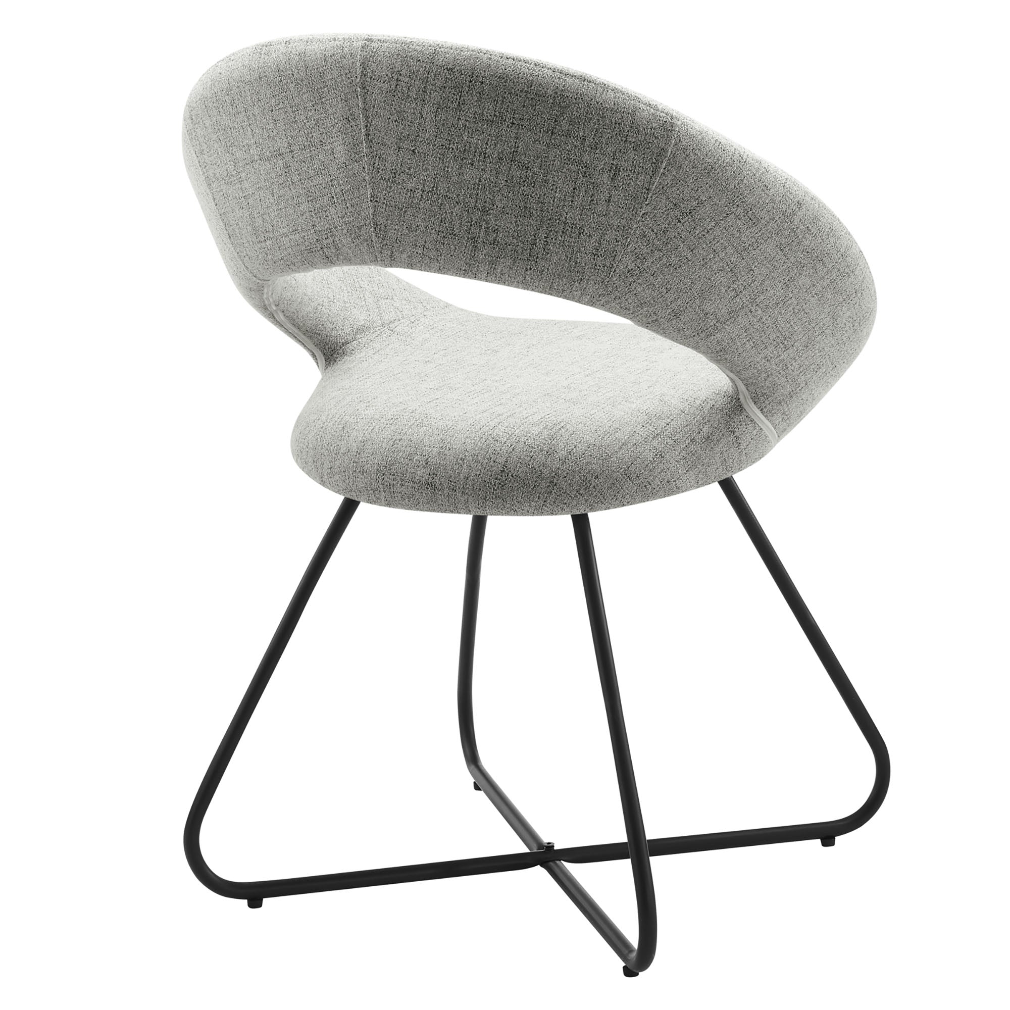 The Nouvelle Upholstered Fabric Dining Chair Set of Two is a buoyant and intriguing fusion of shapes that energizes your dining space, living room, or bedroom. This beautifully balanced side chair set fits well in modern, contemporary, or minimalist settings. The rounded backrest, upholstered in soft polyester fabric, flows seamlessly into the circular seat cushion for a profoundly satisfying effect. Bolstered by dense foam padding, the contoured seat rests on powder-coated black metal hairpin legs, rendering this a whimsical accent chair for your dining room or entryway. Legs are fitted with non-marking foot pins.