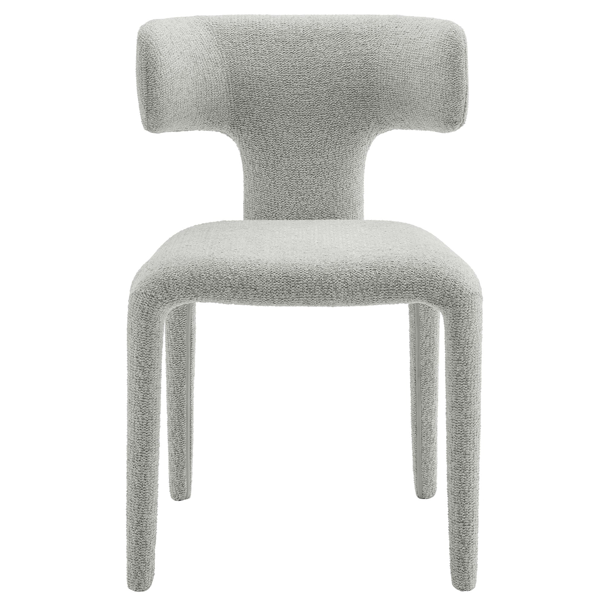 Introduce a sophisticated yet inviting charm to your dining or living area with the Stellan Boucle Dining Chair. Fully covered in luxurious boucle fabric, this upholstered chair exudes cozy elegance with its textured depth and tactile appeal. Made from recycled plastic bottles, the upholstery fabric is also OEKO-TEX® STANDARD 100 certified. The curved back dining chair’s sculptural silhouette is defined with rounded edges and splayed back legs, creating a modern yet timeless profile. Built on a sturdy metal frame hidden beneath the plush padding, this boucle side chair balances form and function beautifully. Non-marking floor glides protect your floors. Perfect as an armless dining chair, accent chair, or even a stylish guest or desk chair, Stellan is a versatile addition to any contemporary or modern space. Weight Capacity: 300 lbs.