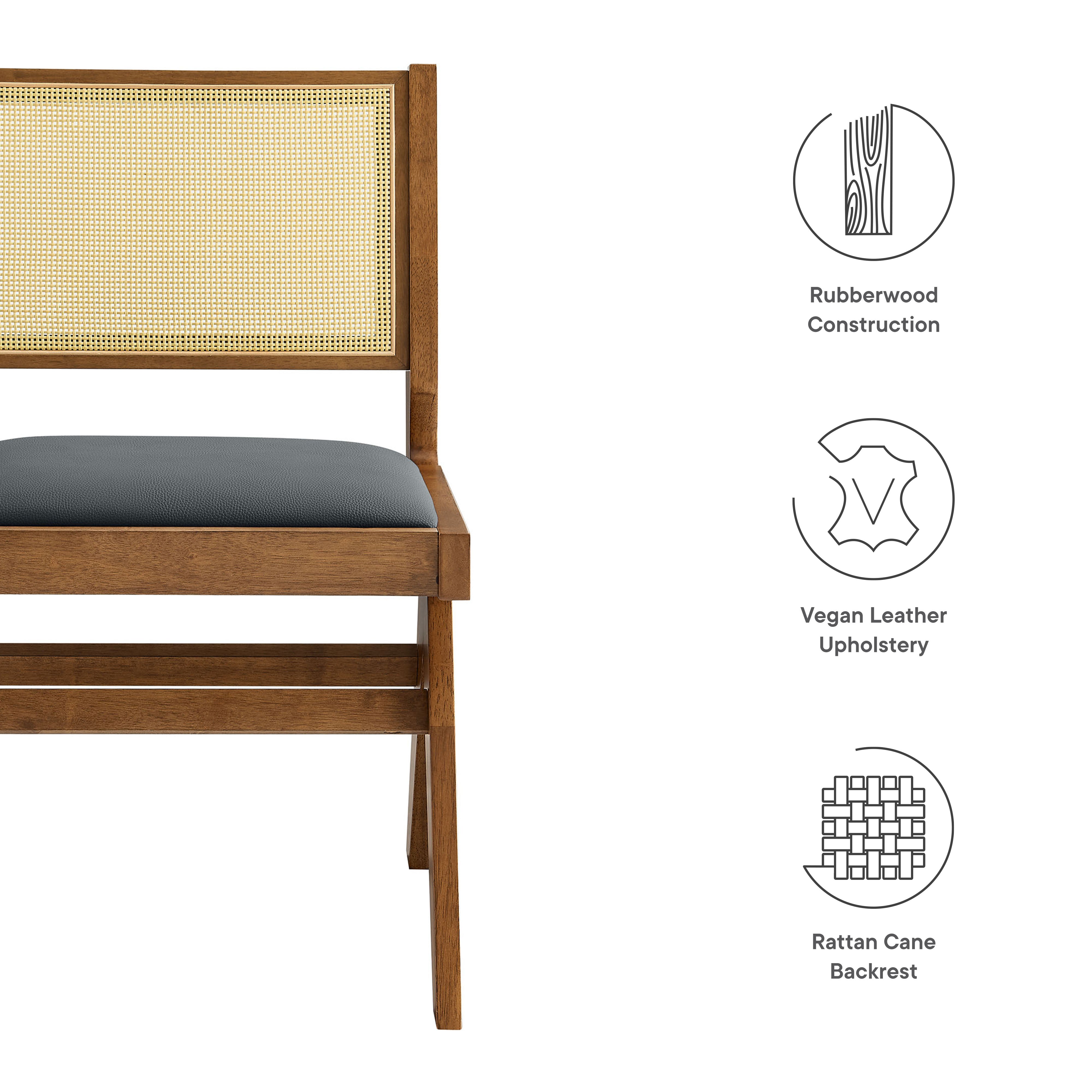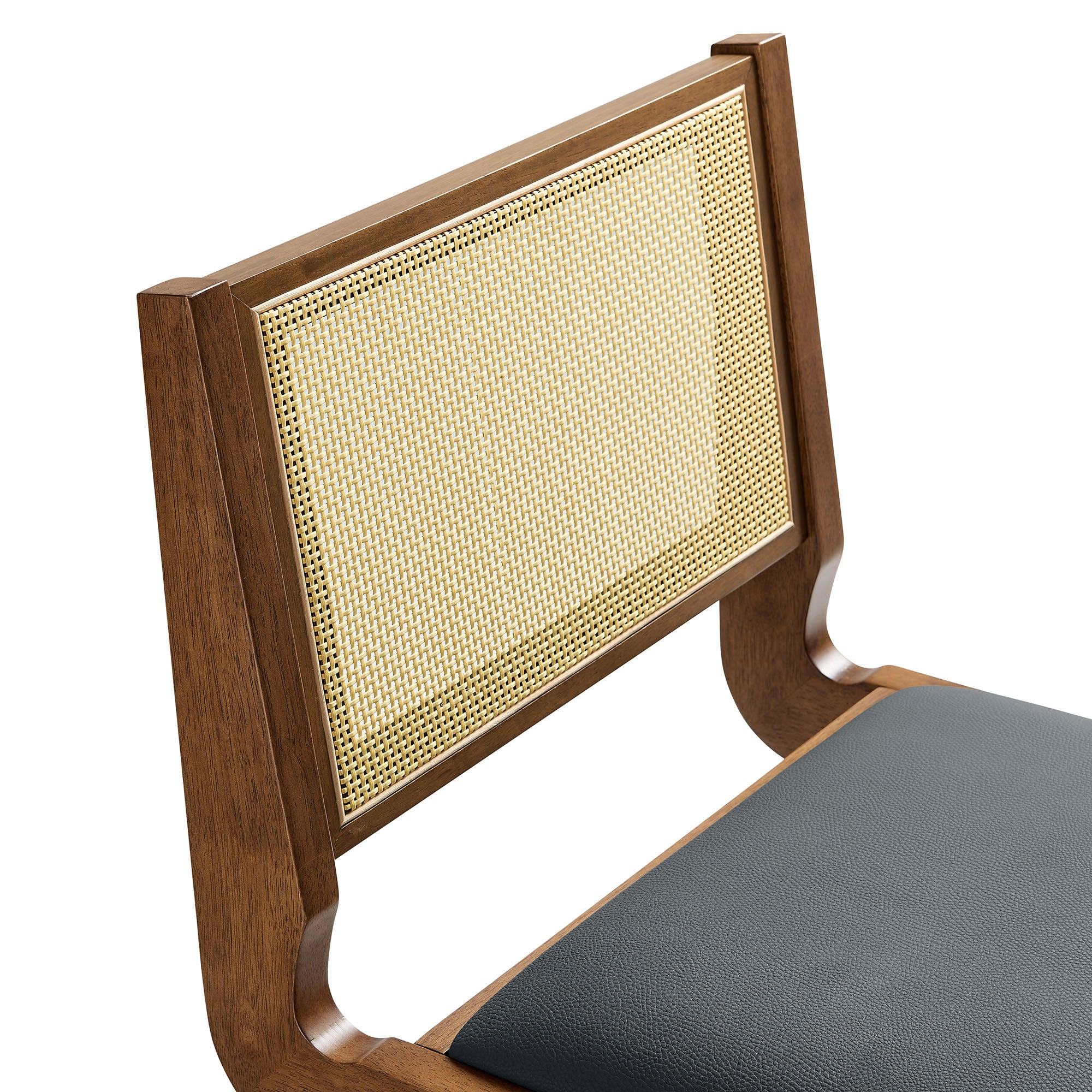 Thera Vegan Leather and Cane Dining Side Chairs Set of 2 in Walnut Black