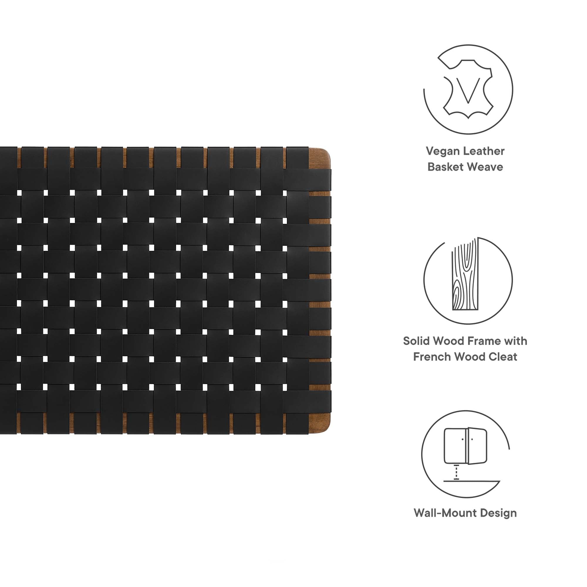 Elevate your bedroom's ambiance with the Sparta Vegan Leather Weave Twin Headboard, a perfect blend of robustness and artistic flair. Constructed meticulously with a solid wood frame, this twin size headboard introduces enduring stability and a touch of organic aesthetics. The standout feature is its basket woven vegan leather, adding a unique dimension and a tactile texture that captivates the eye. Perfect for a children's bedroom, small guest room, college dorm room, or shared bedroom, the Sparta Faux Leather Headboard offers a versatile wall-mount design that allows you to modify the height to your preference. This adaptability makes the twin bed headboard an ideal fit for any bedroom space. Its wall mount headboard design not only allows for easy installation but also provides space-saving benefits.