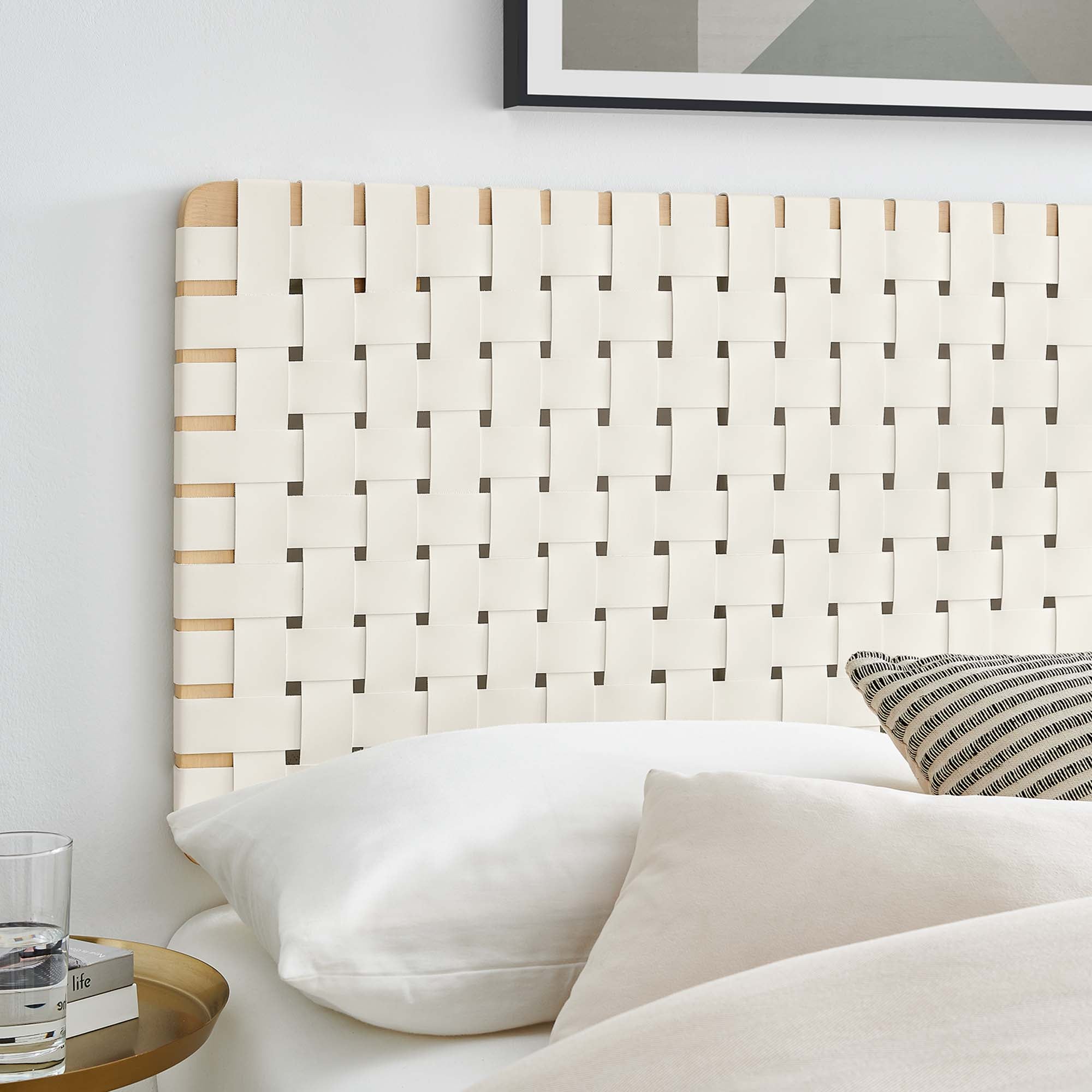 Sparta Weave Wall-Mount Vegan Leather Twin Headboard in Natural Beige