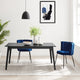 Redefine the modern dining experience with the Juxtapose 63" Rectangle Dining Table. Perfect for everyday dining and entertaining, this rectangular dining table rests atop a sturdy rubberwood frame with four tapered angular legs. This kitchen table is crafted from MDF with a wood grain veneer that is easy to clean and maintain. A striking addition to the modern home, Juxtapose emboldens decor in the dining room or kitchen. Assembly required.