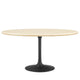 Embrace the day-to-day with the Lippa 60" Oval Artificial Travertine Dining Table. Perfect for everyday meals, the exquisite tabletop, crafted from artificial travertine , exudes modern elegance and offers a comfortable seating area for six. Resting on a tapered, white metal pedestal base with a chip-resistant finish, the sleek silhouette complements dining areas, kitchens, living rooms, breakfast nooks, or sunrooms. Includes non-marking felt pad to protect flooring. Assembly Required.