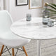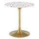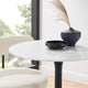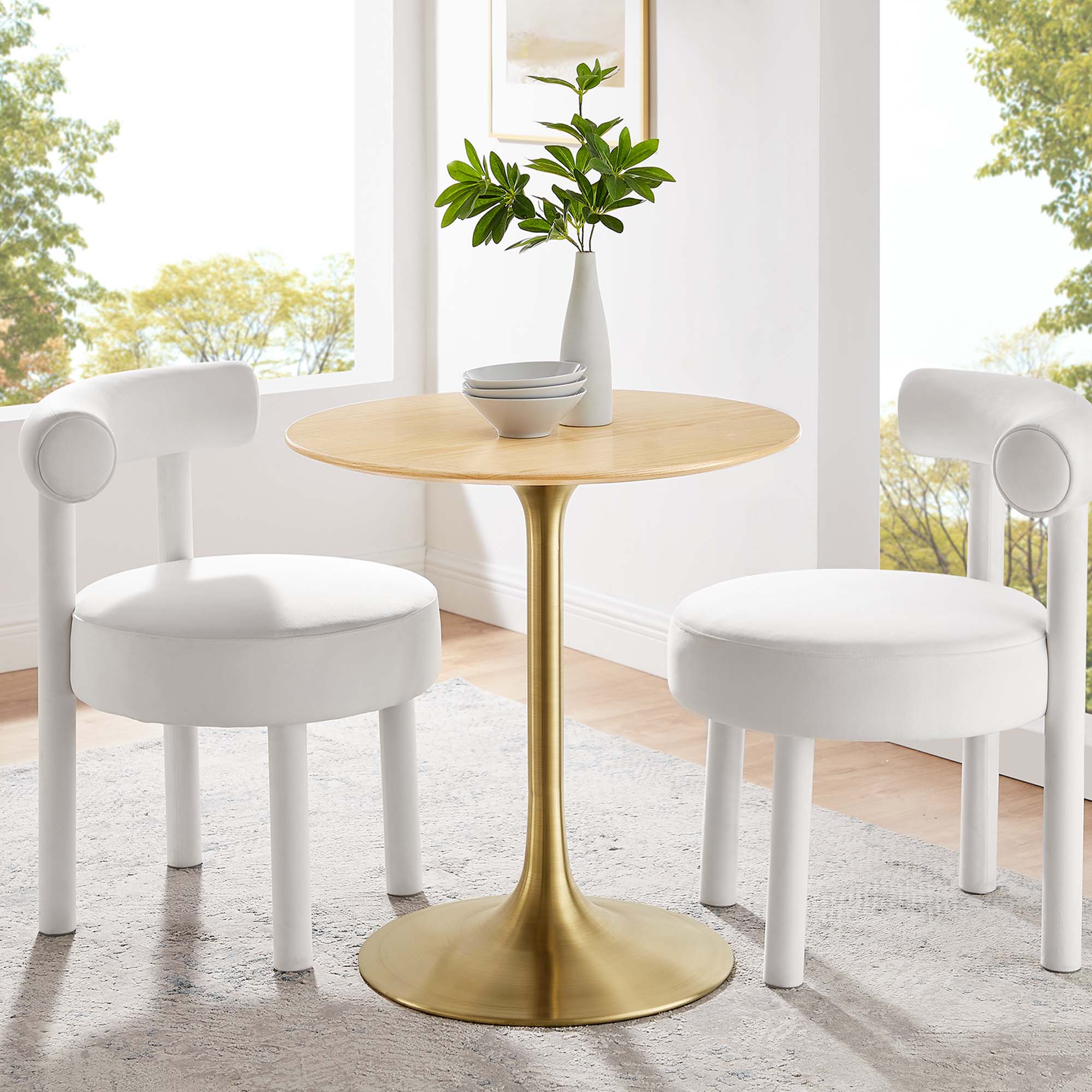 Let modern inspiration flow while gathered around the Lippa 28" Round Dining Table. Perfect for entertaining family and friends or everyday dining, this pedestal table comfortably seats two. Its round tabletop is crafted with MDF with a high gloss finish and beveled edge for a contemporary yet timeless design. Embodying an iconic mid-century silhouette, this pedestal dining table floats on a sleek tapered metal pedestal base with a chip-resistant lacquered finish. Includes non-marking felt pad to protect flooring. Assembly required.