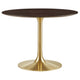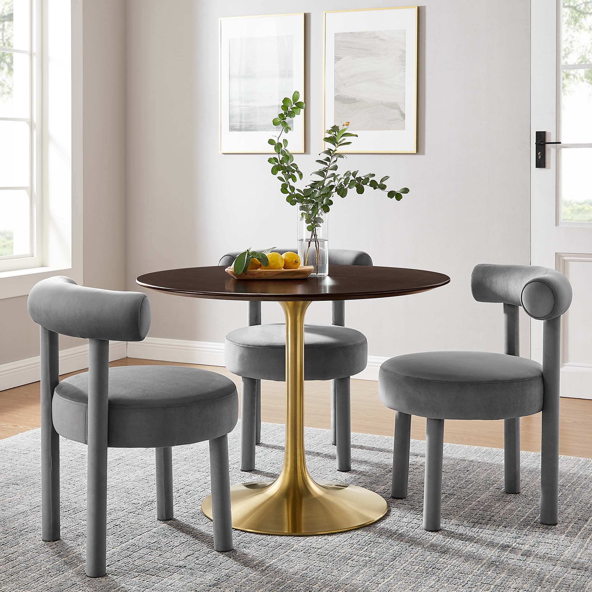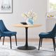 Let modern inspiration flow while gathered around the Lippa 48" Round Dining Table. Perfect for entertaining family and friends or everyday dining, this pedestal table comfortably seats four. Its round tabletop is crafted with MDF with a high gloss finish and beveled edge for a contemporary yet timeless design. Embodying an iconic mid-century silhouette, this pedestal dining table floats on a sleek tapered metal pedestal base with a chip-resistant lacquered finish. Includes non-marking felt pad to protect flooring. Assembly required.