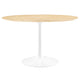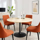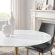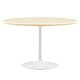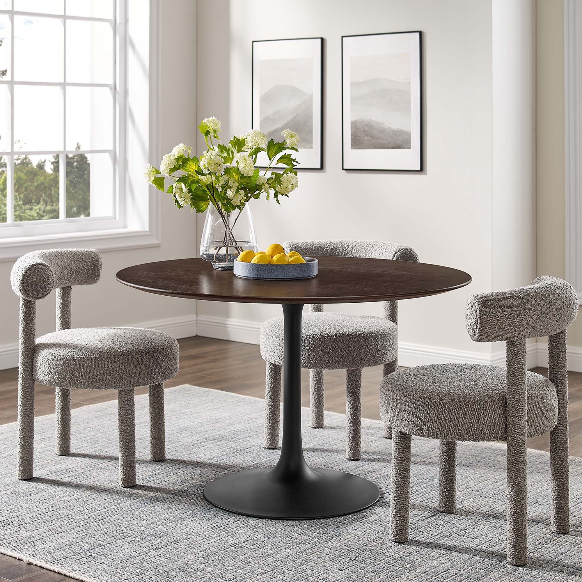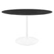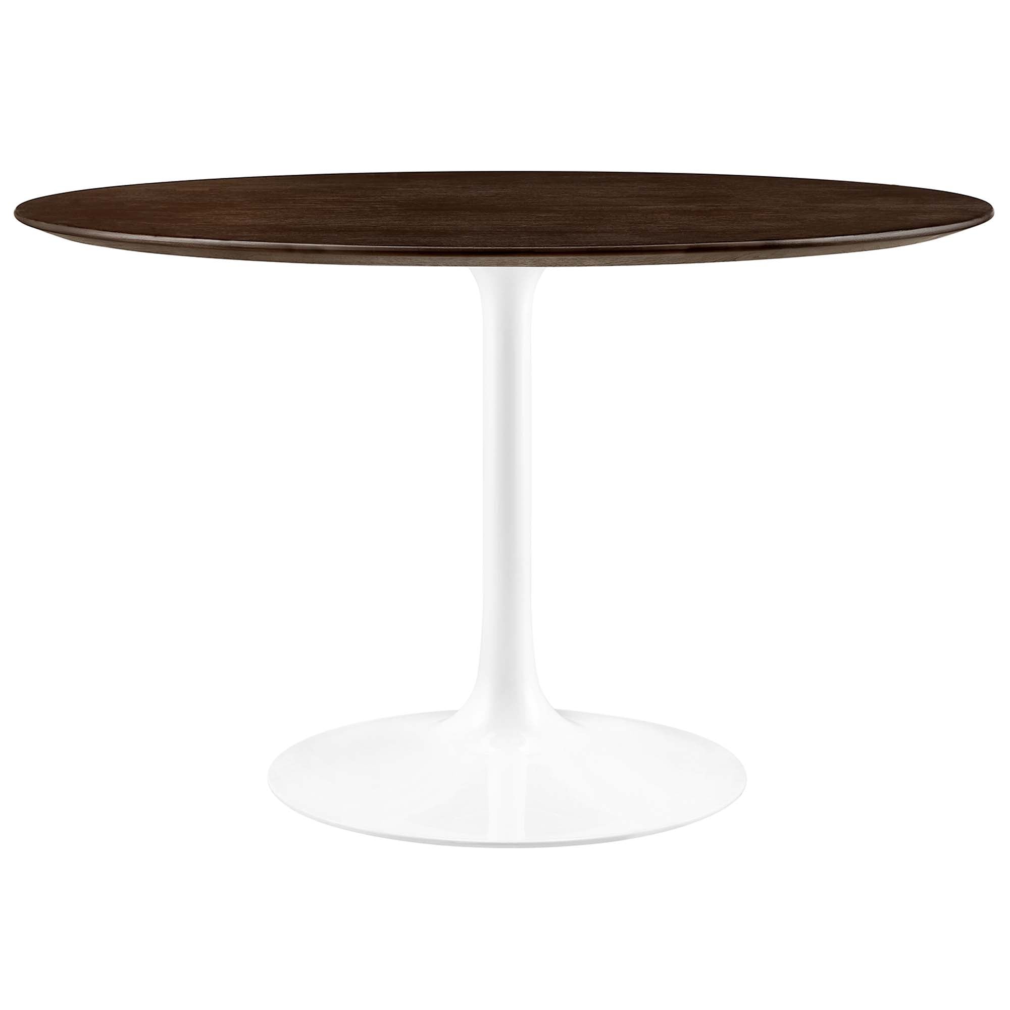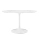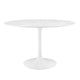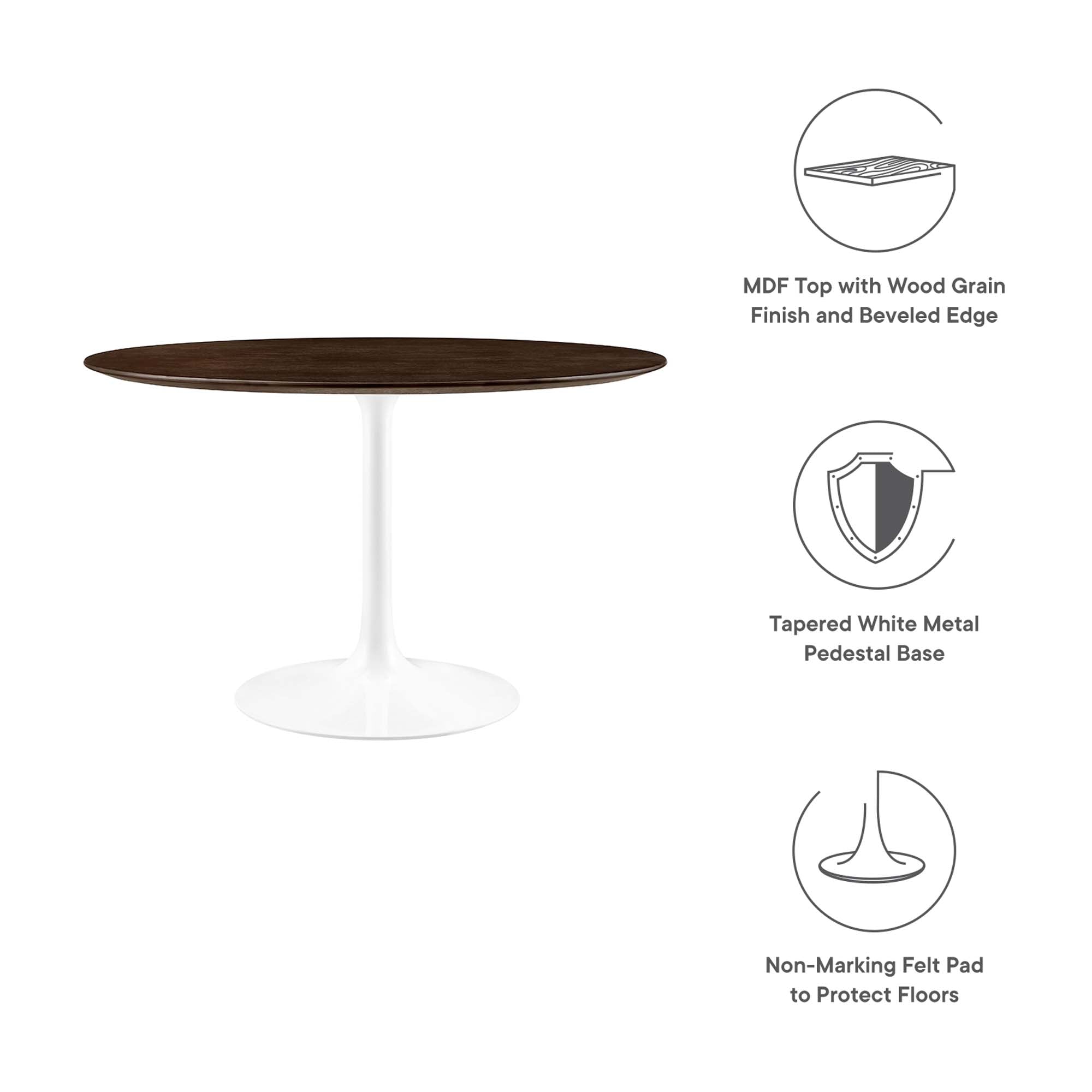 Let modern inspiration flow while gathered around the Lippa 48" Round Dining Table. Perfect for entertaining family and friends or everyday dining, this pedestal table comfortably seats four. Its round tabletop is crafted with MDF with a high gloss finish and beveled edge for a contemporary yet timeless design. Embodying an iconic mid-century silhouette, this pedestal dining table floats on a sleek tapered metal pedestal base with a chip-resistant lacquered finish. Includes non-marking felt pad to protect flooring. Assembly required.