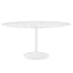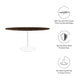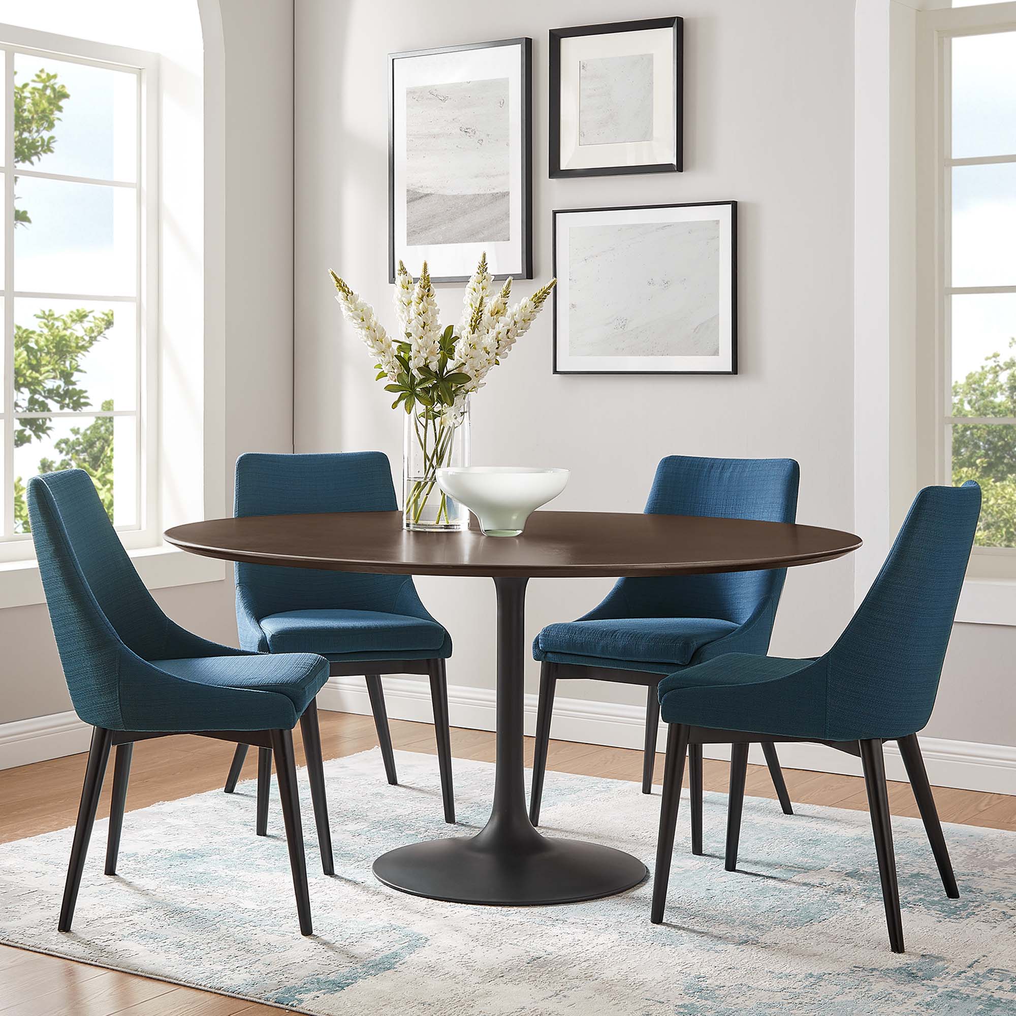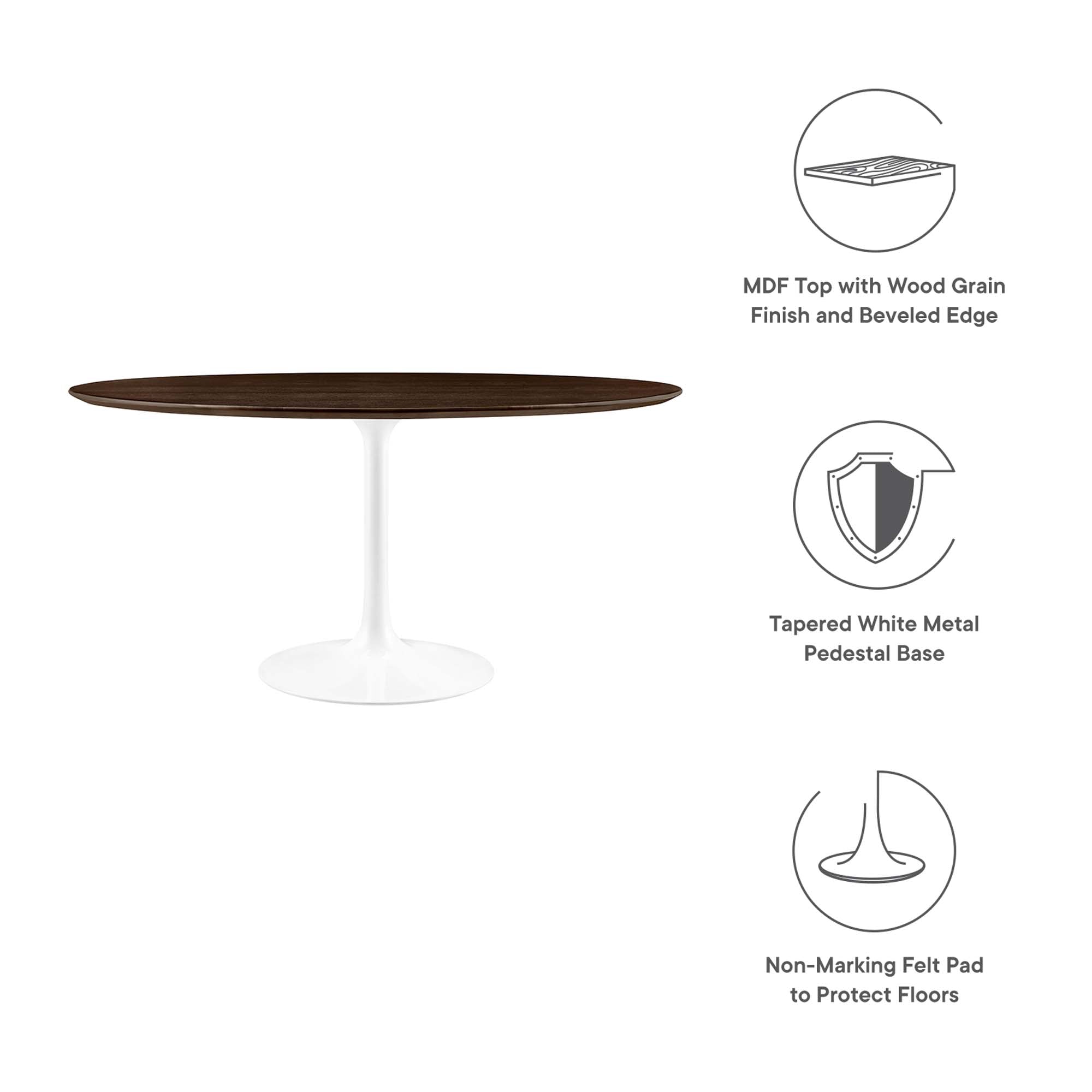 Let modern inspiration flow while gathered around the Lippa 60" Round Dining Table. Perfect for entertaining family and friends or everyday dining, this pedestal table comfortably seats four. Its round tabletop is crafted with MDF with a high gloss finish and beveled edge for a contemporary yet timeless design. Embodying an iconic mid-century silhouette, this pedestal dining table floats on a sleek tapered metal pedestal base with a chip-resistant lacquered finish. Includes non-marking felt pad to protect flooring. Assembly required.
