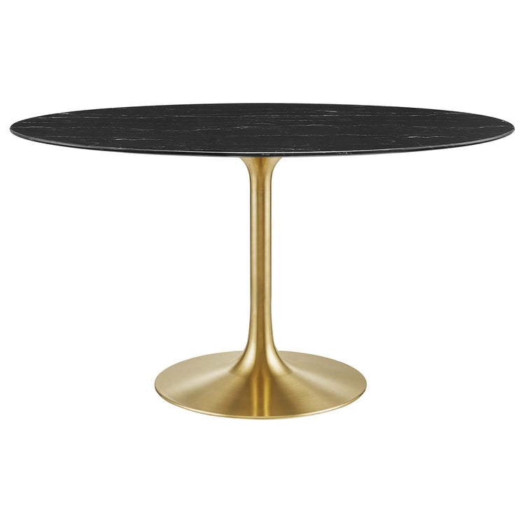 Reflecting a seamless organic shape and timeless form, the Lippa dining table has become a symbol of modernism for over the past 60 years. Before its release, homes were filled with clunky remnants of an industrial age long gone by. But in order to advance into the new world, homes first had to transition from the traditional square table, into a piece that connoted progress. The base and dimensions are true to the original specifications, while the table’s oval-shaped artificial marble top, and tapered metal base, are carefully lacquered with a durable finish.