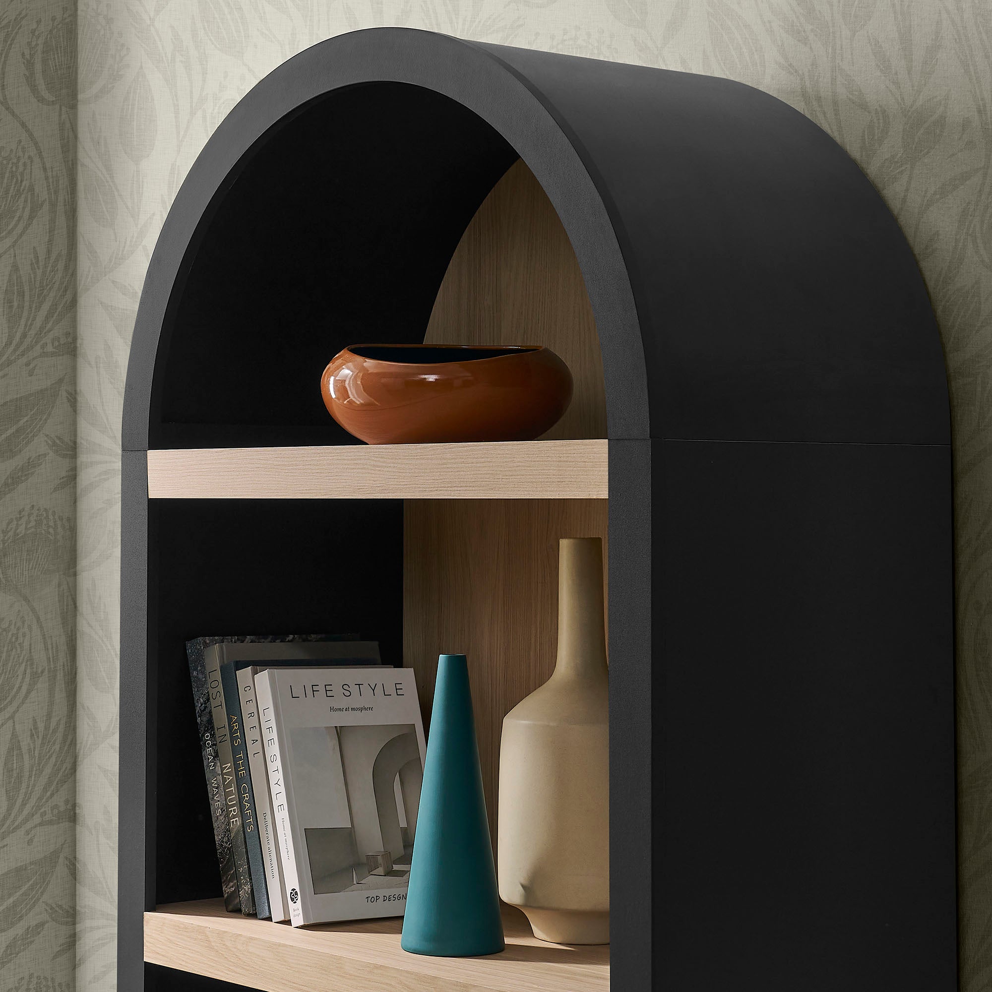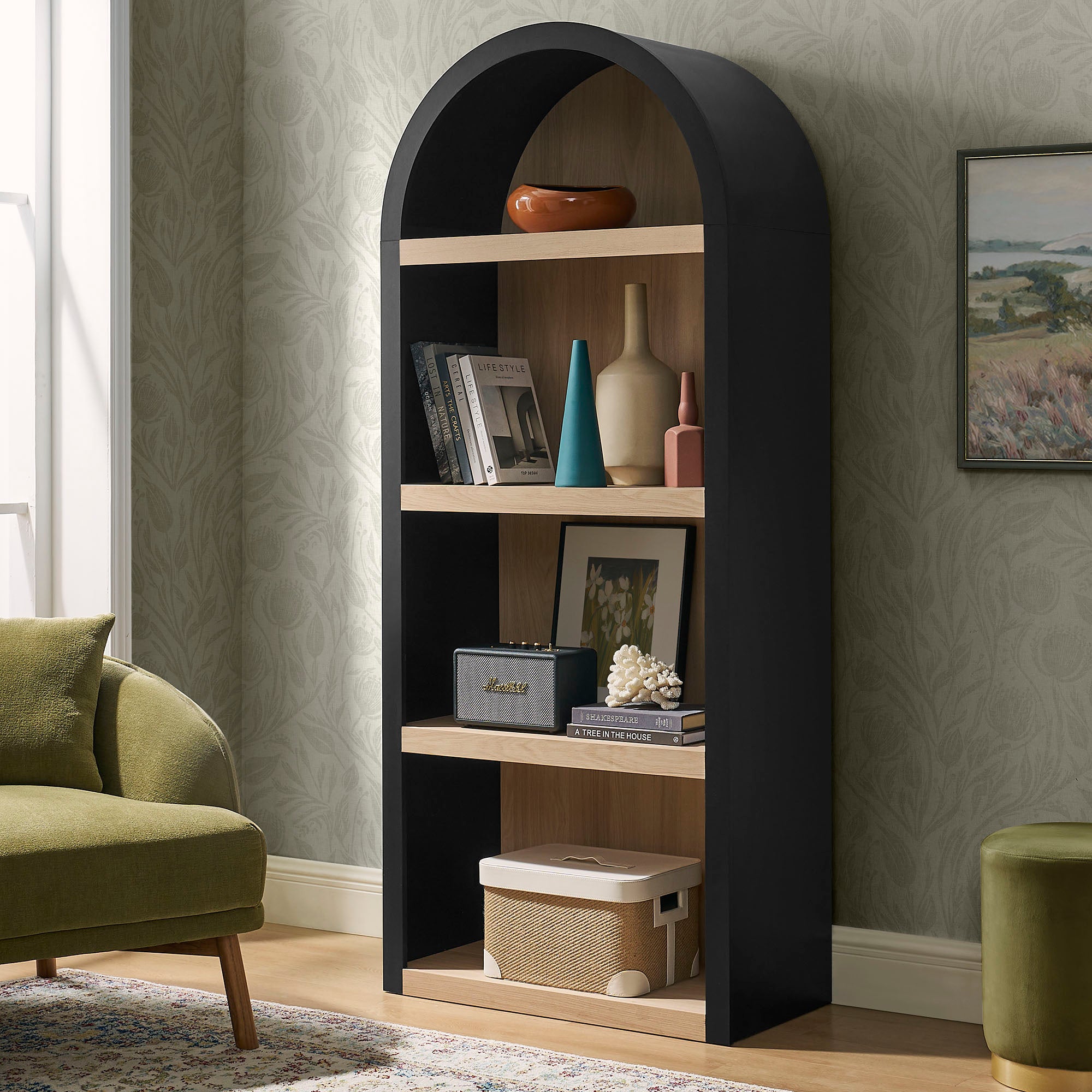 Caleb 4 Arched Display Shelf Bookcase in Black