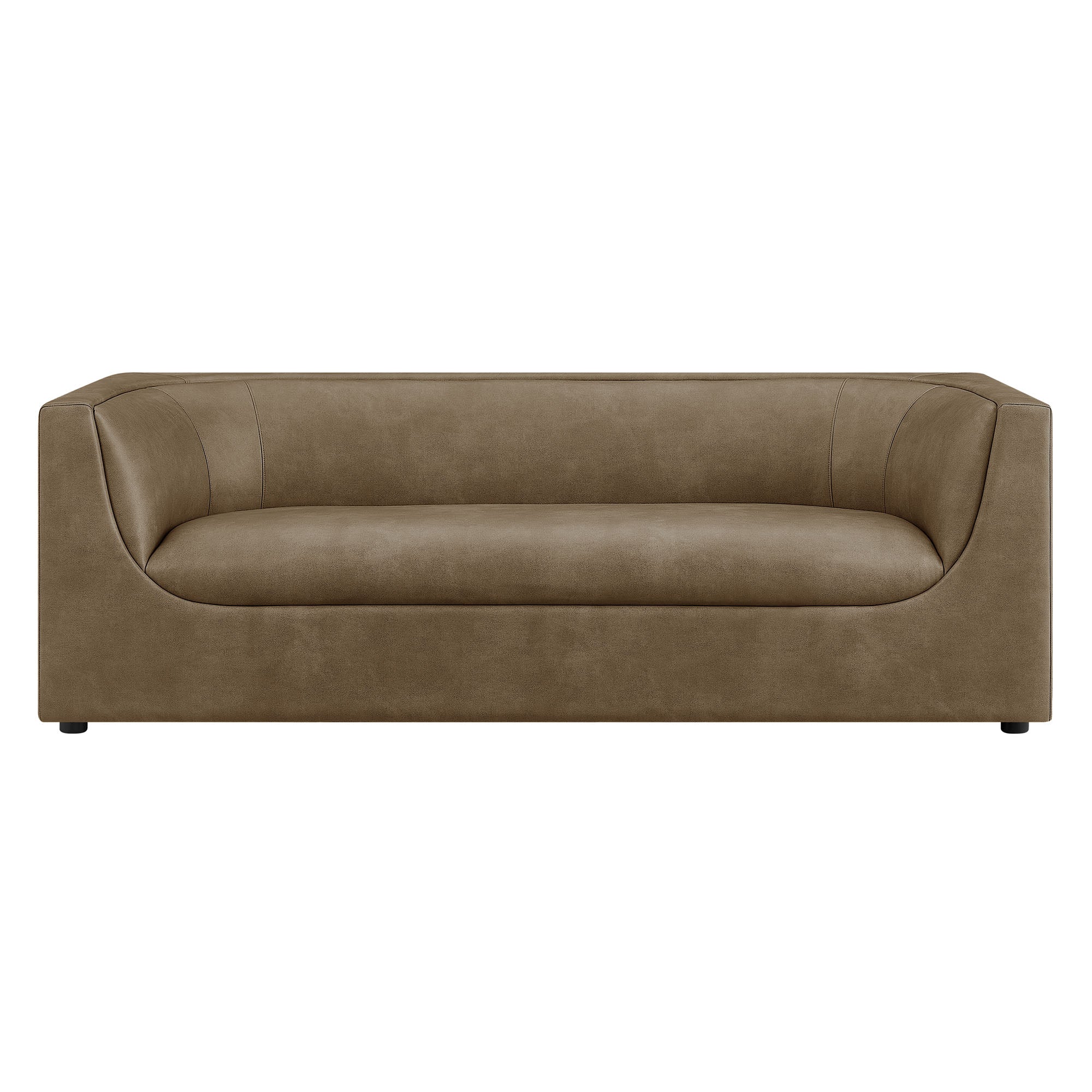 Hilda 86" Curved Back Vegan Leather Sofa in Mushroom