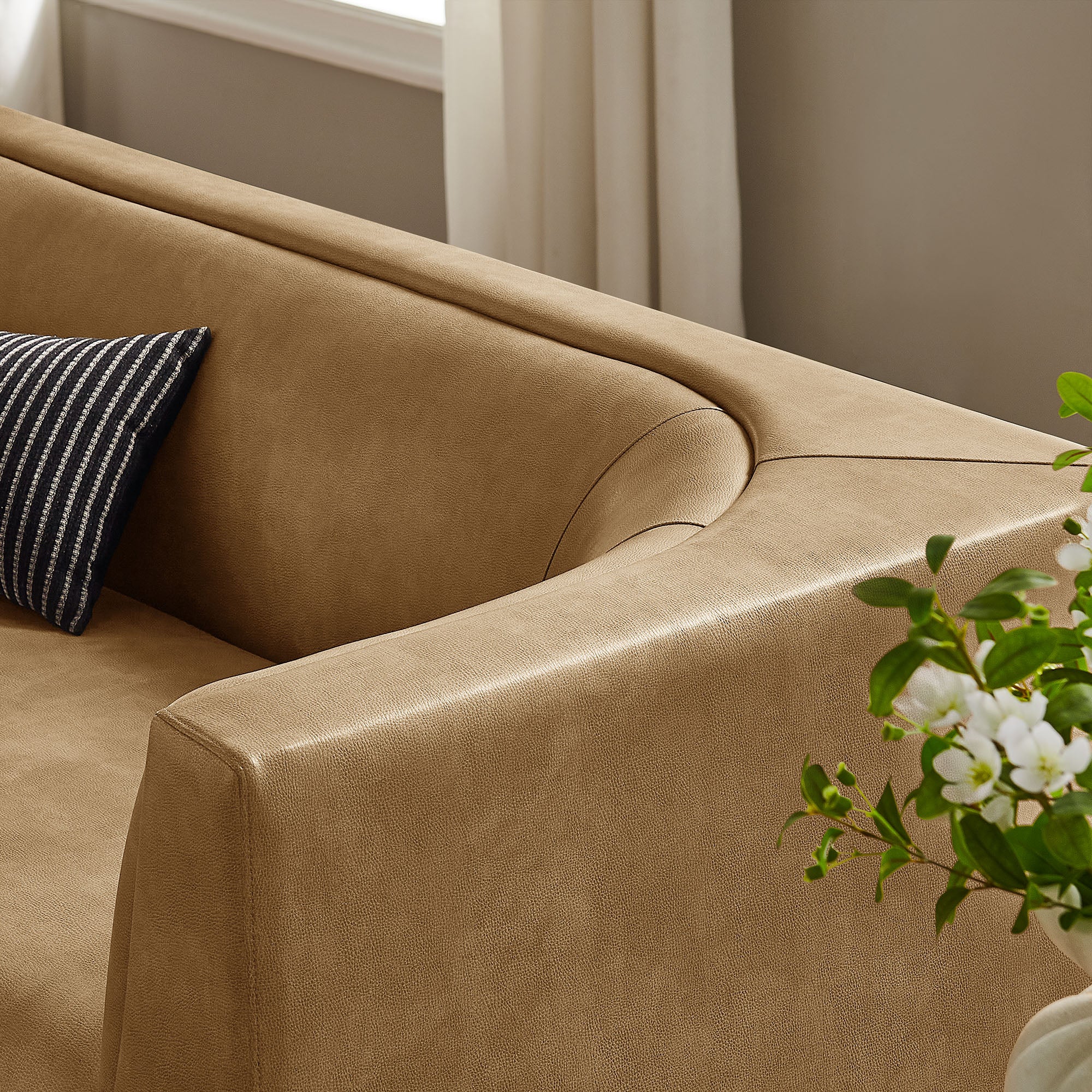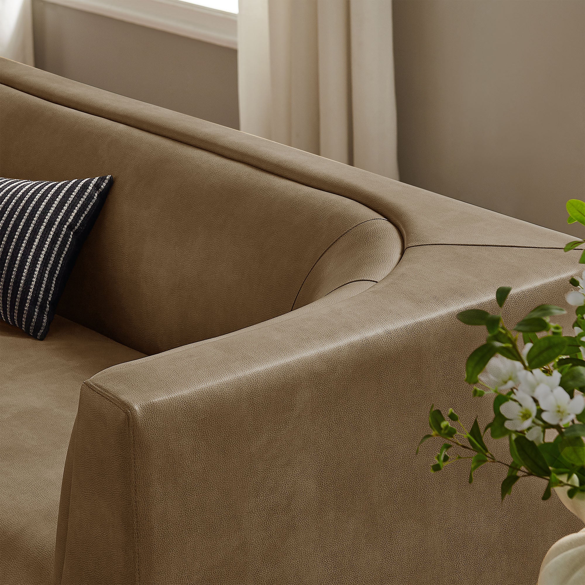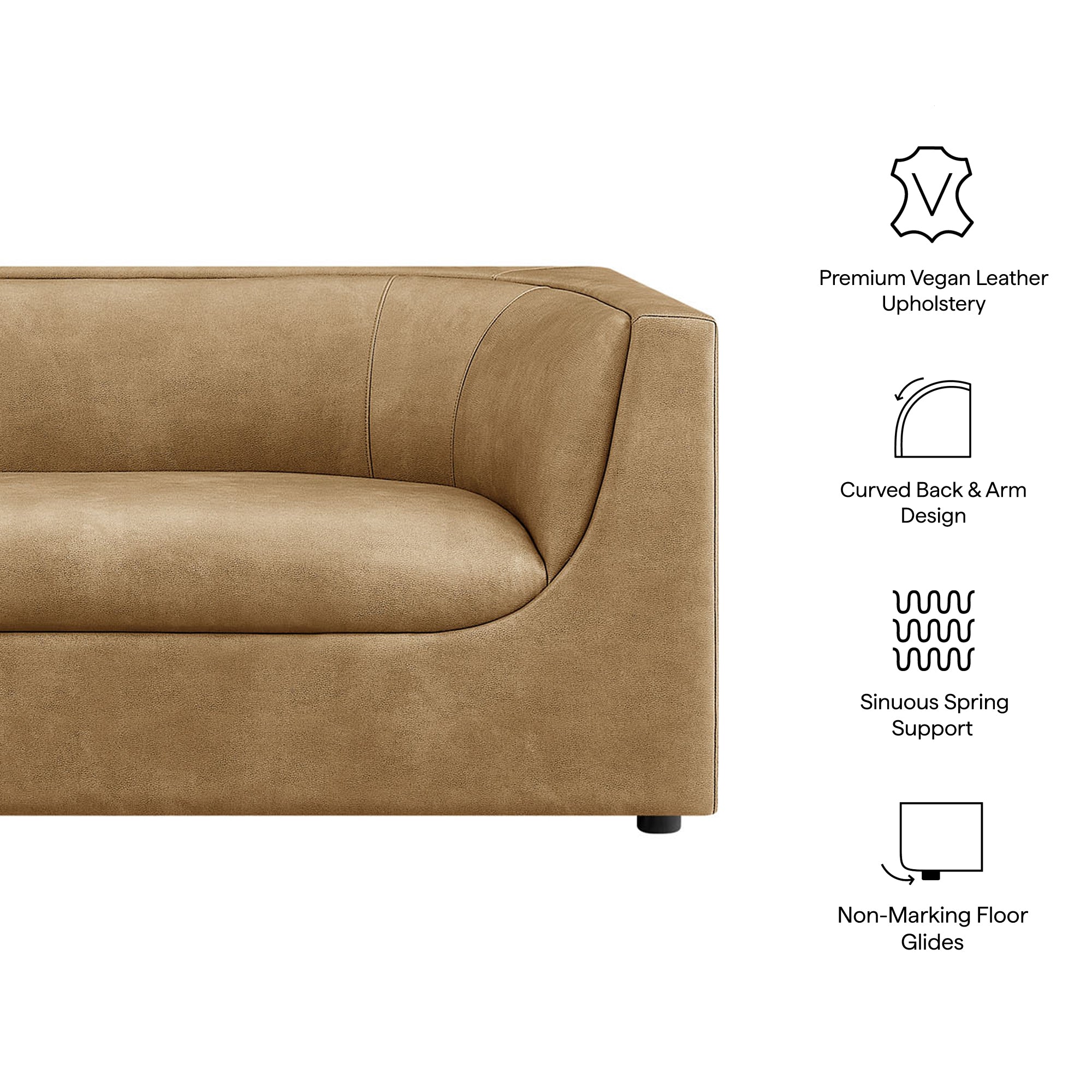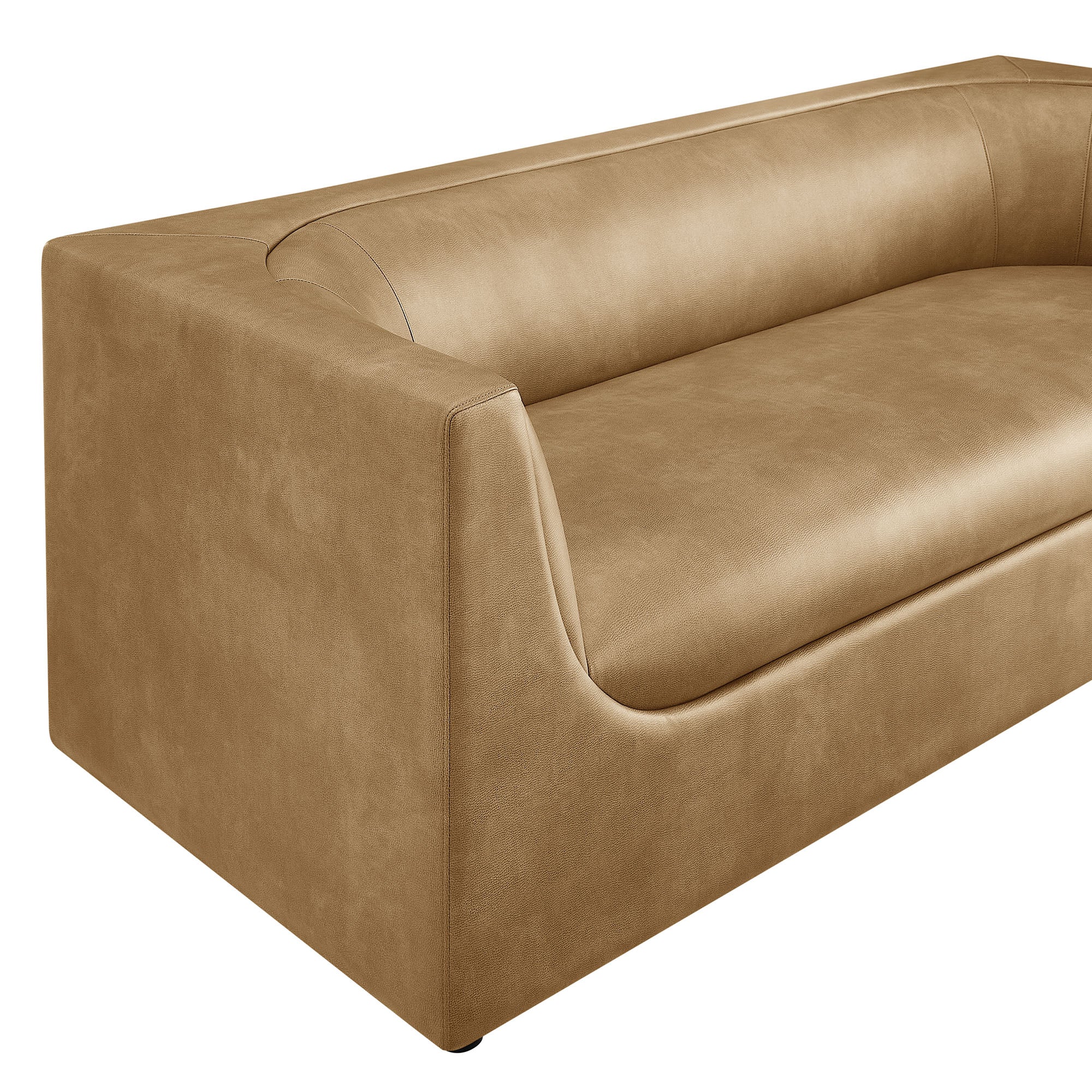 Curved Back Pebbled Vegan Leather Sofa