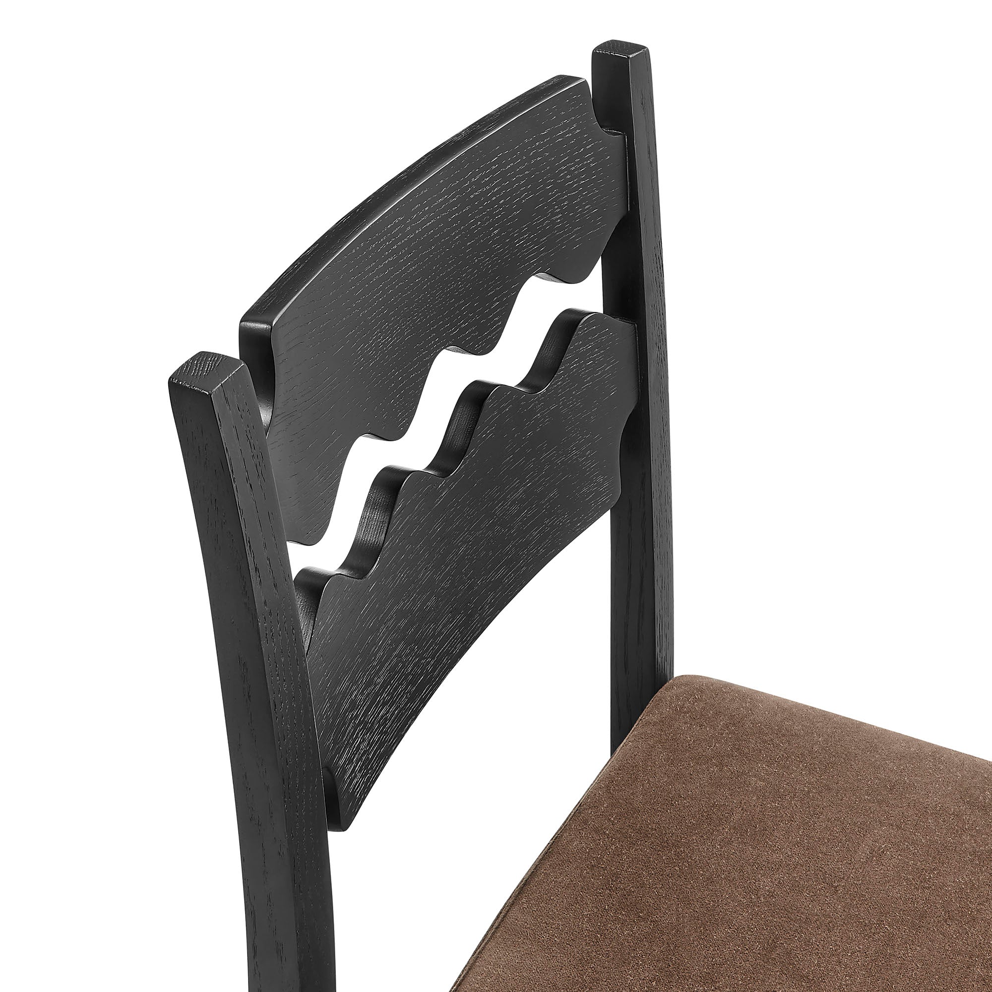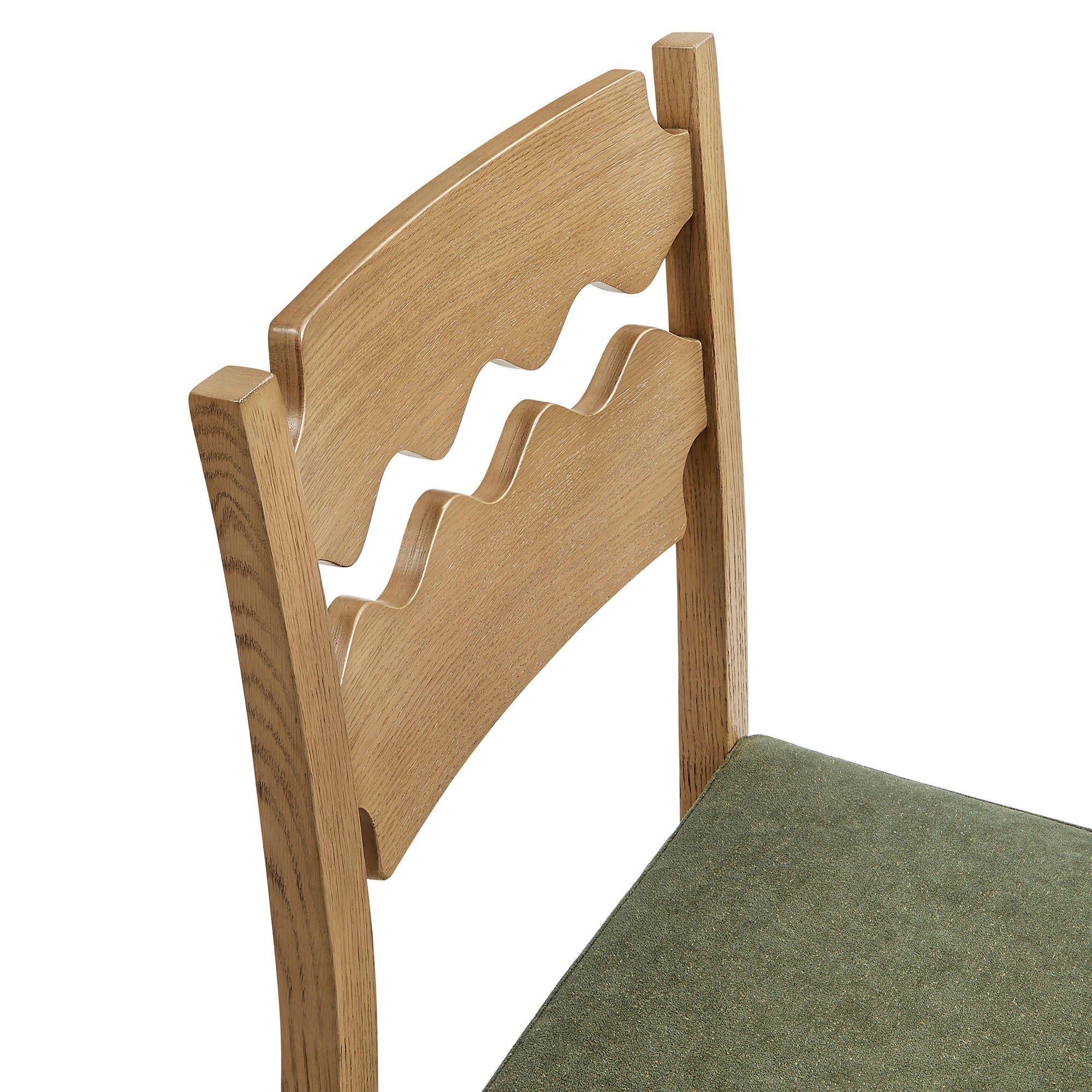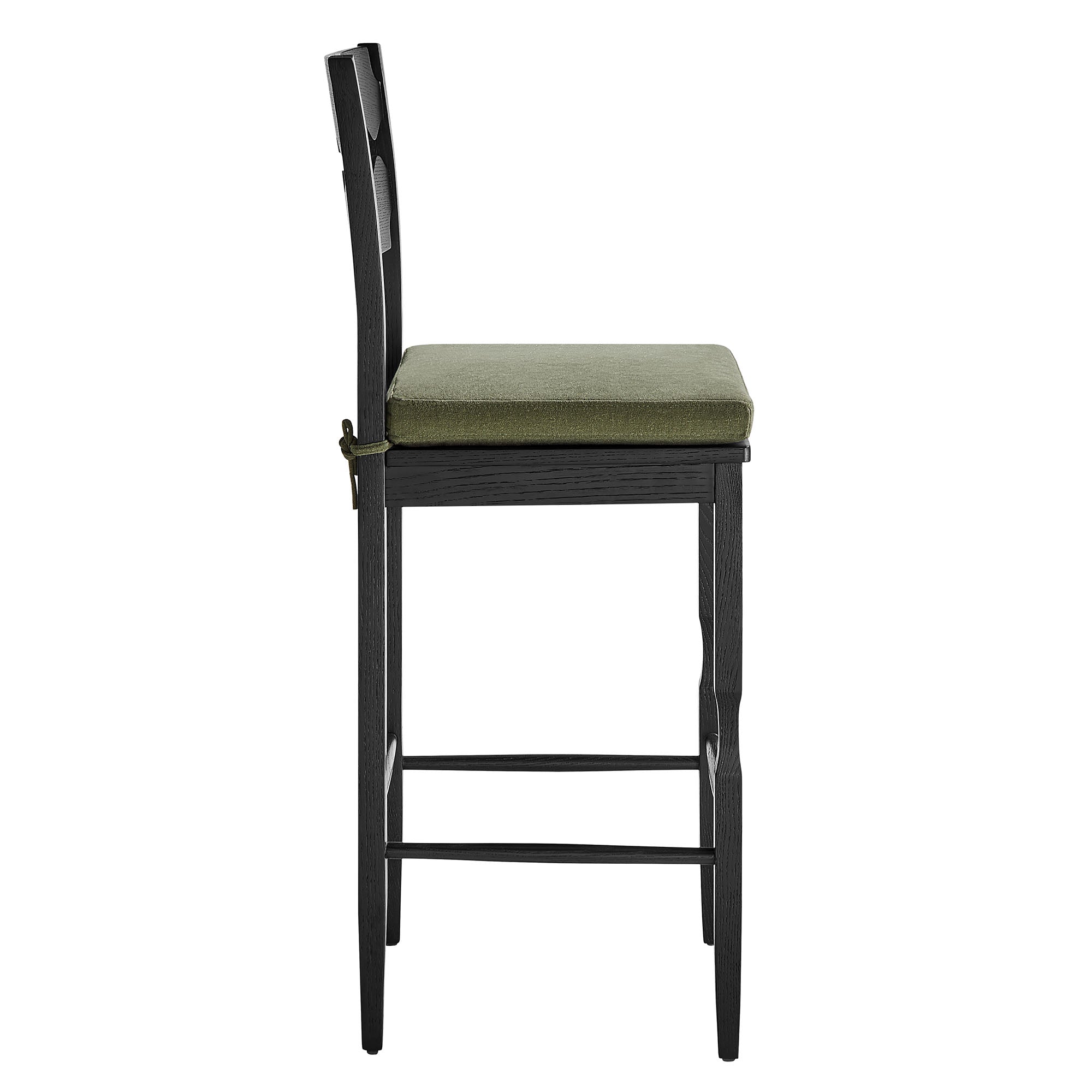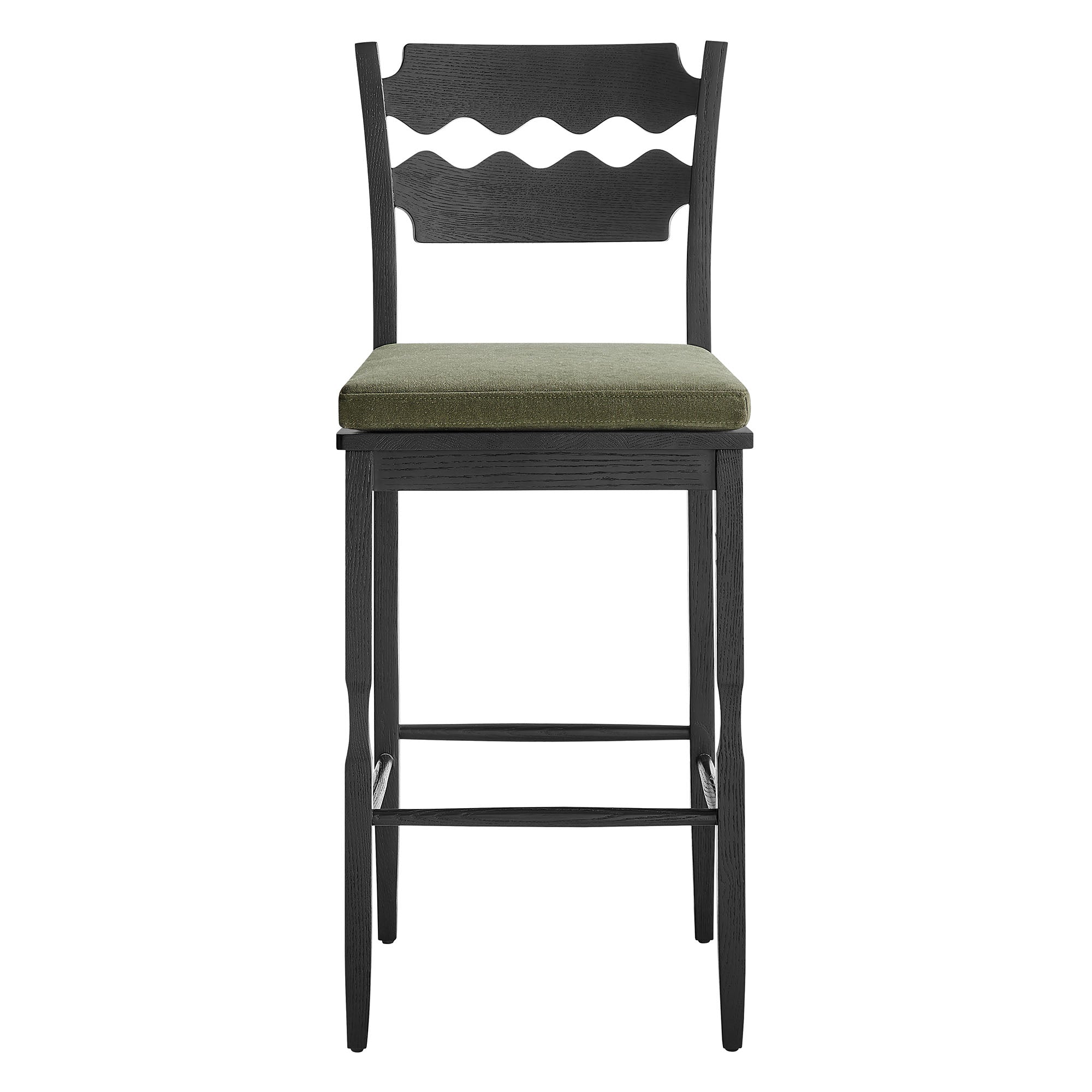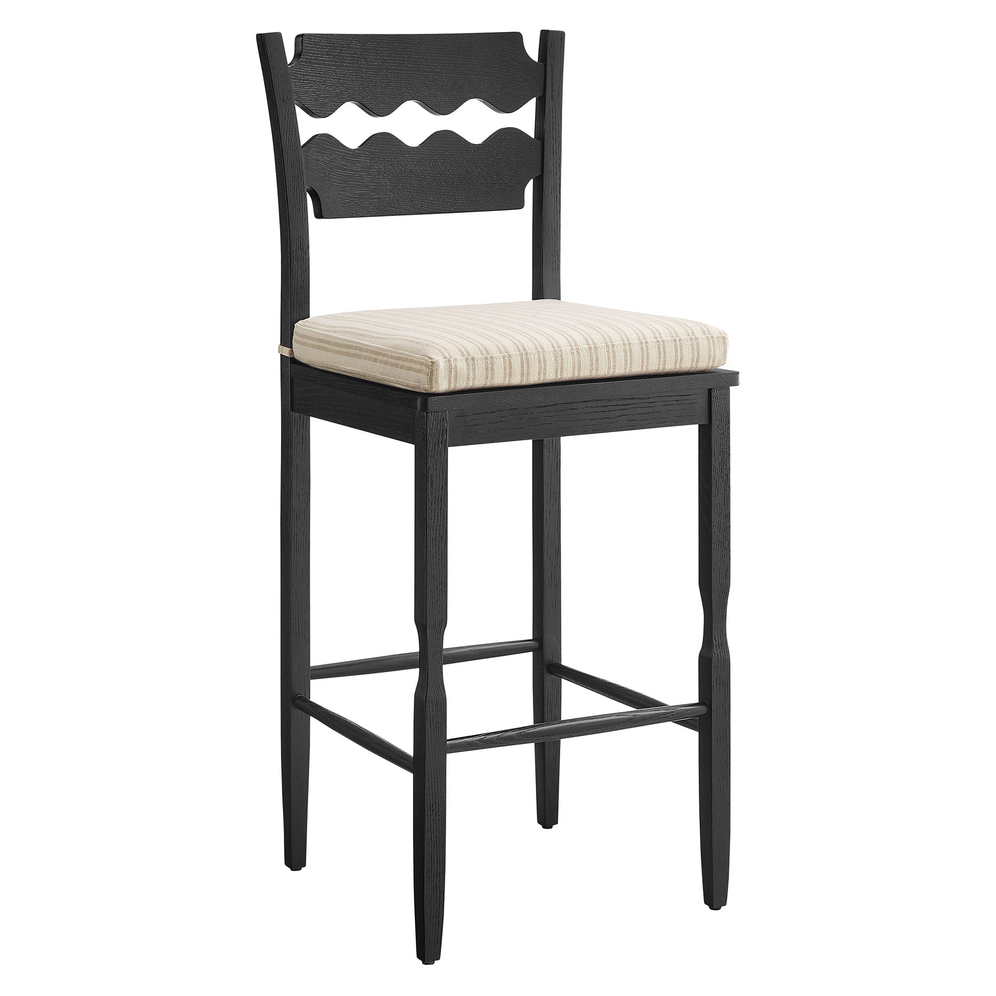 Jax Oak Wood Bar Stool With Wavy Razor Back and Cushion in Weathered Oak Linen
