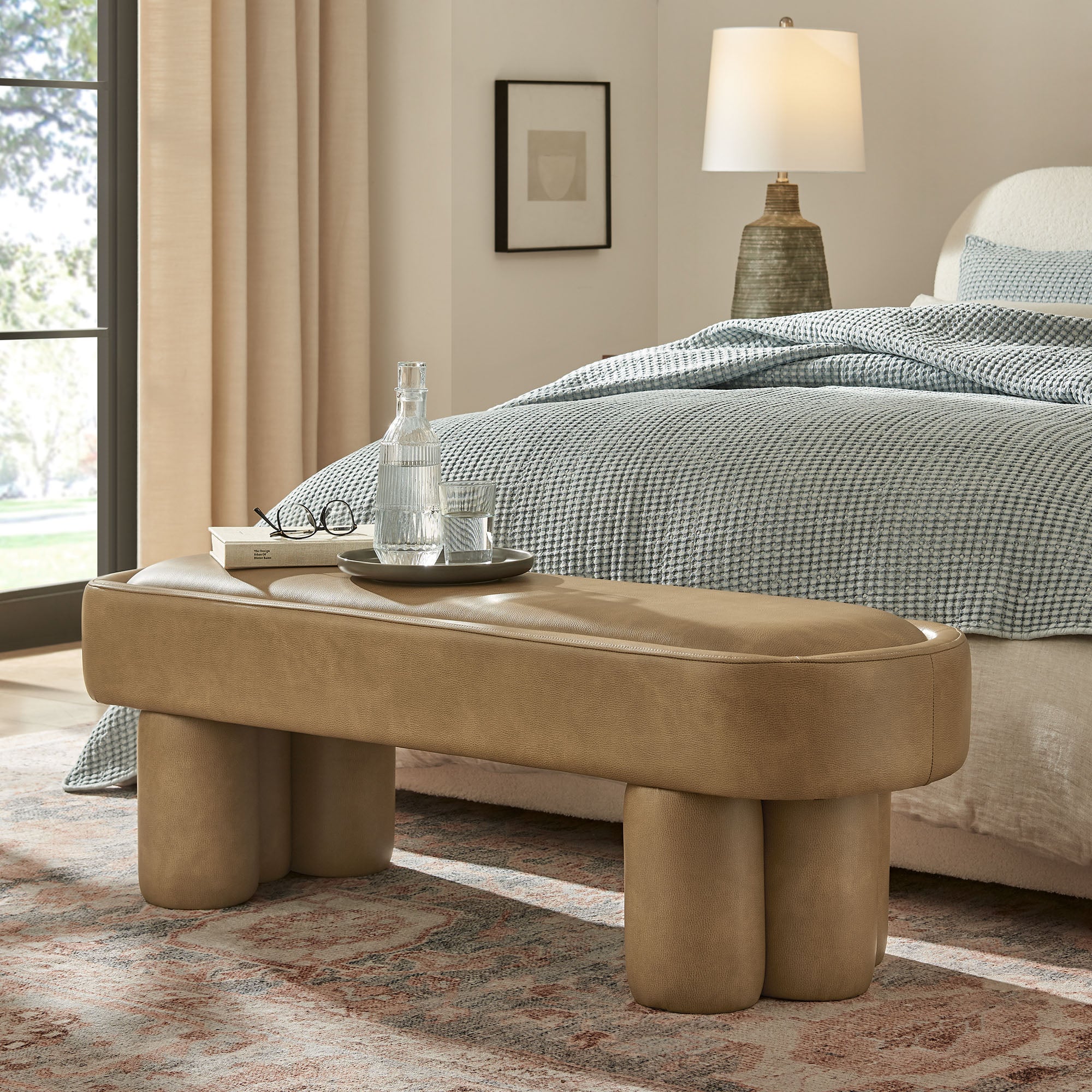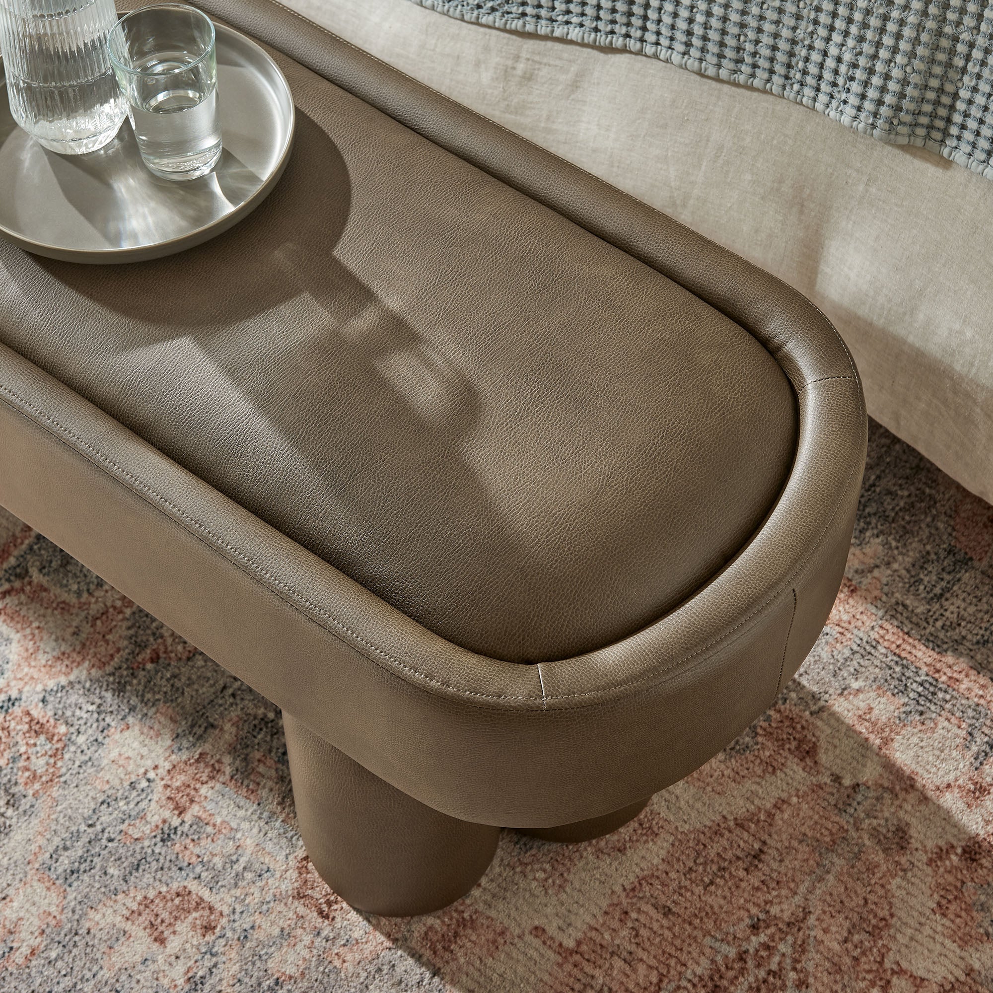 Mossi 52-Inch Oval Vegan Leather Bench in Toast
