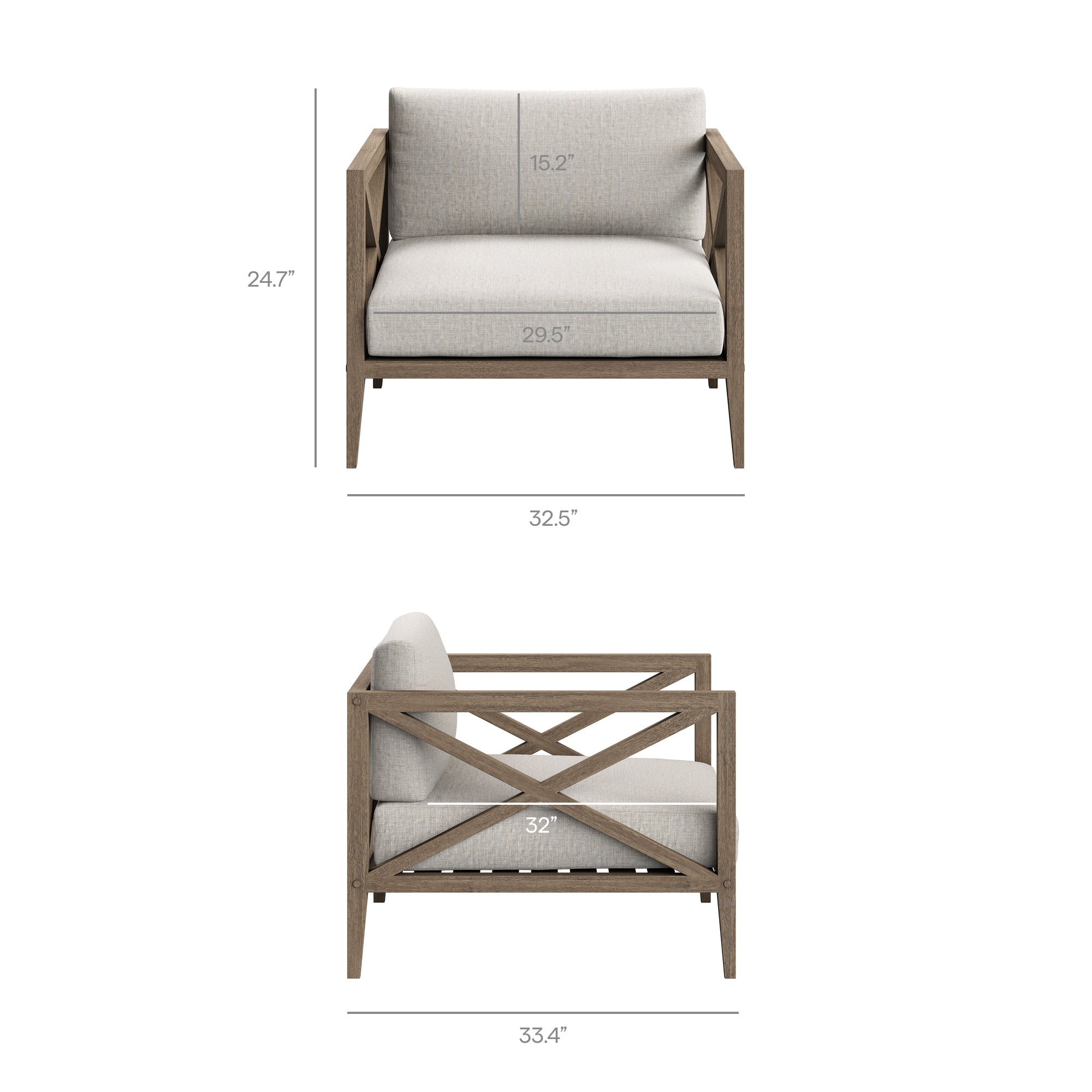 | Overall armchair dimensions 33.4"l x 32.5"w x 24.7"h |
