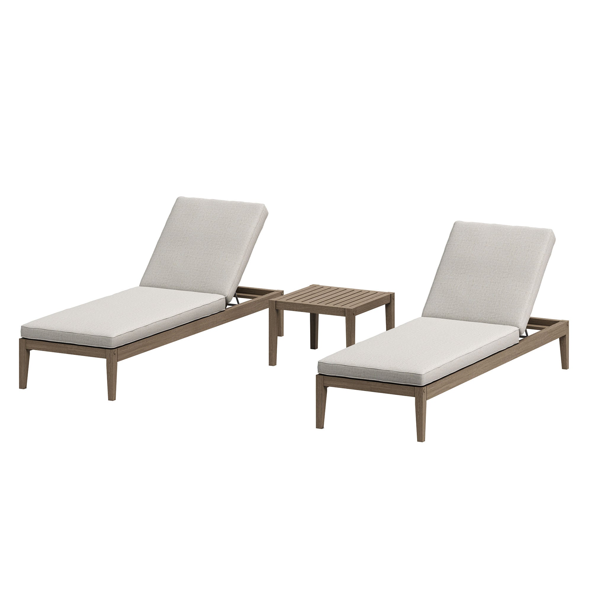Northlake 3-Piece Outdoor Teak Wood Furniture Set with Chaise Lounges and Side Table in Weathered Gray