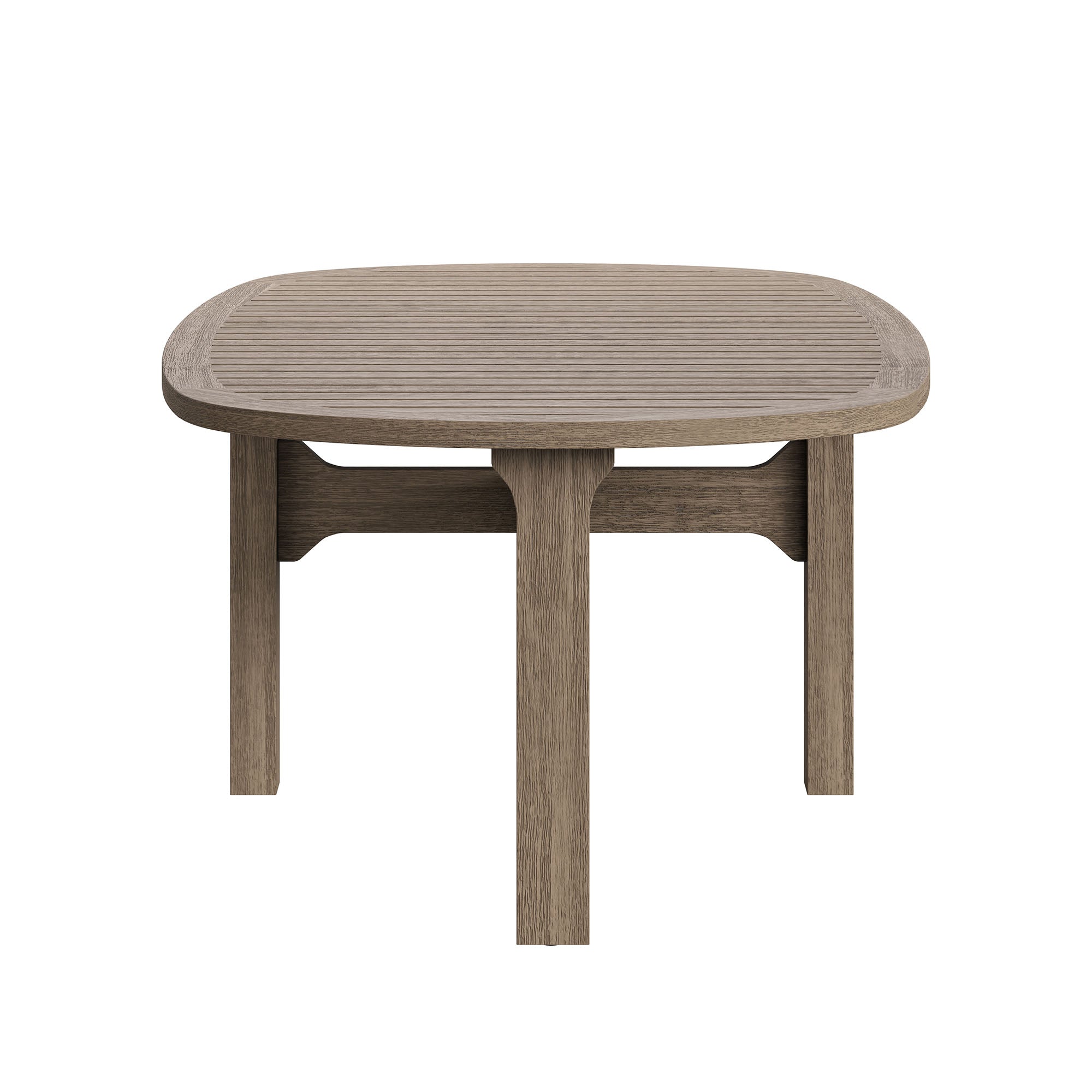 Refresh your outdoor space with the Saratoga 4-Piece Patio Furniture Set. Expertly crafted from durable teak wood with a water-based finish that highlights its natural grain, this backyard furniture set includes a sofa, two lounge chairs, and a coffee table. The sofa and lounge chairs feature an angular frame with sculpted armrests, slatted seat foundations, and plush seat and back cushions covered in weather-resistant, water-resistant, and stain-resistant fabric for easy maintenance and year-round relaxation. The coffee table boasts a beautifully slatted top with an intersecting stretcher base, offering both durability and a refined silhouette. Perfect for patios, porches, and outdoor lounge areas, the Saratoga 4 Piece Patio Set blends modern design with timeless craftsmanship. Assembly required.