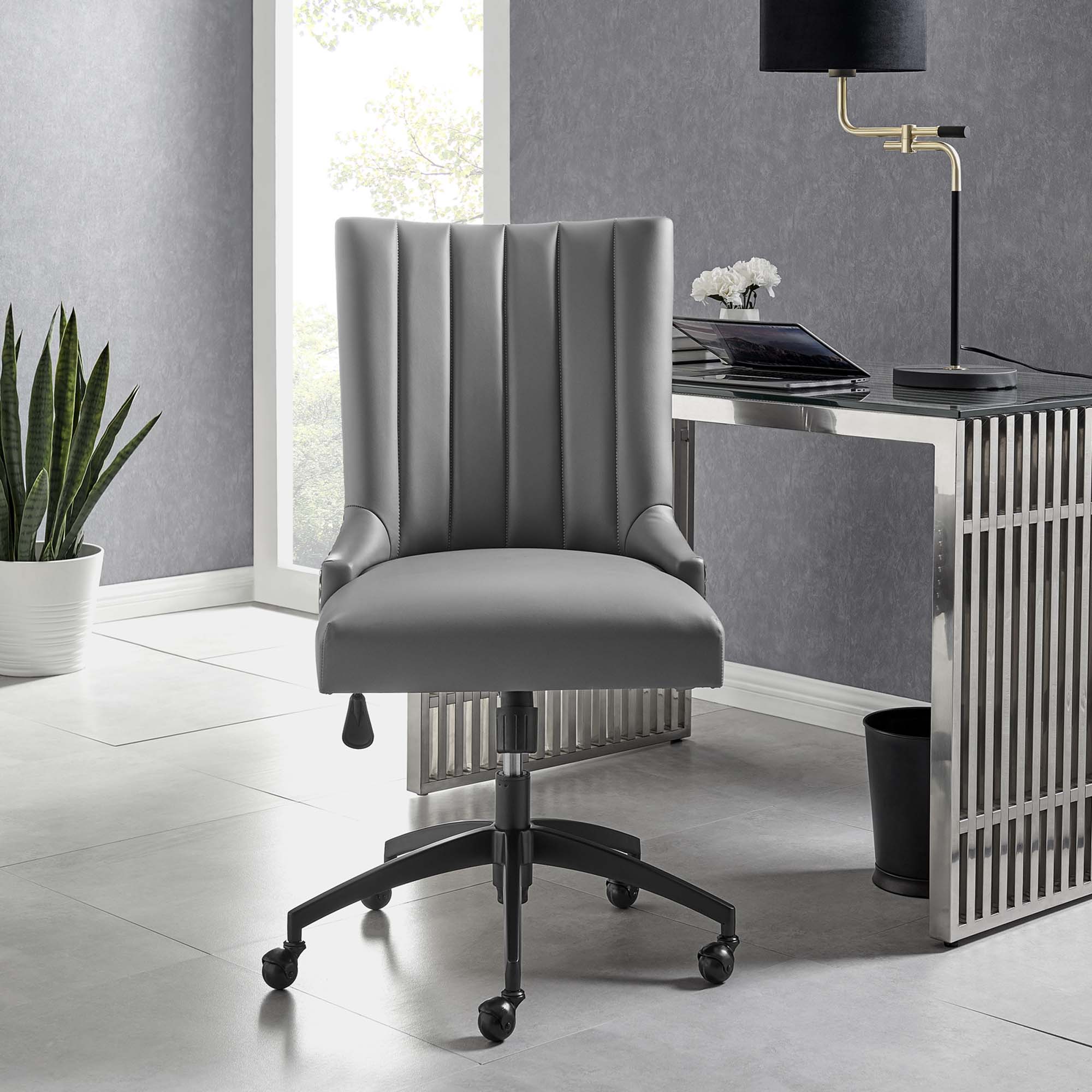 Empower Channel Tufted Vegan Leather Office Chair in Black Gray