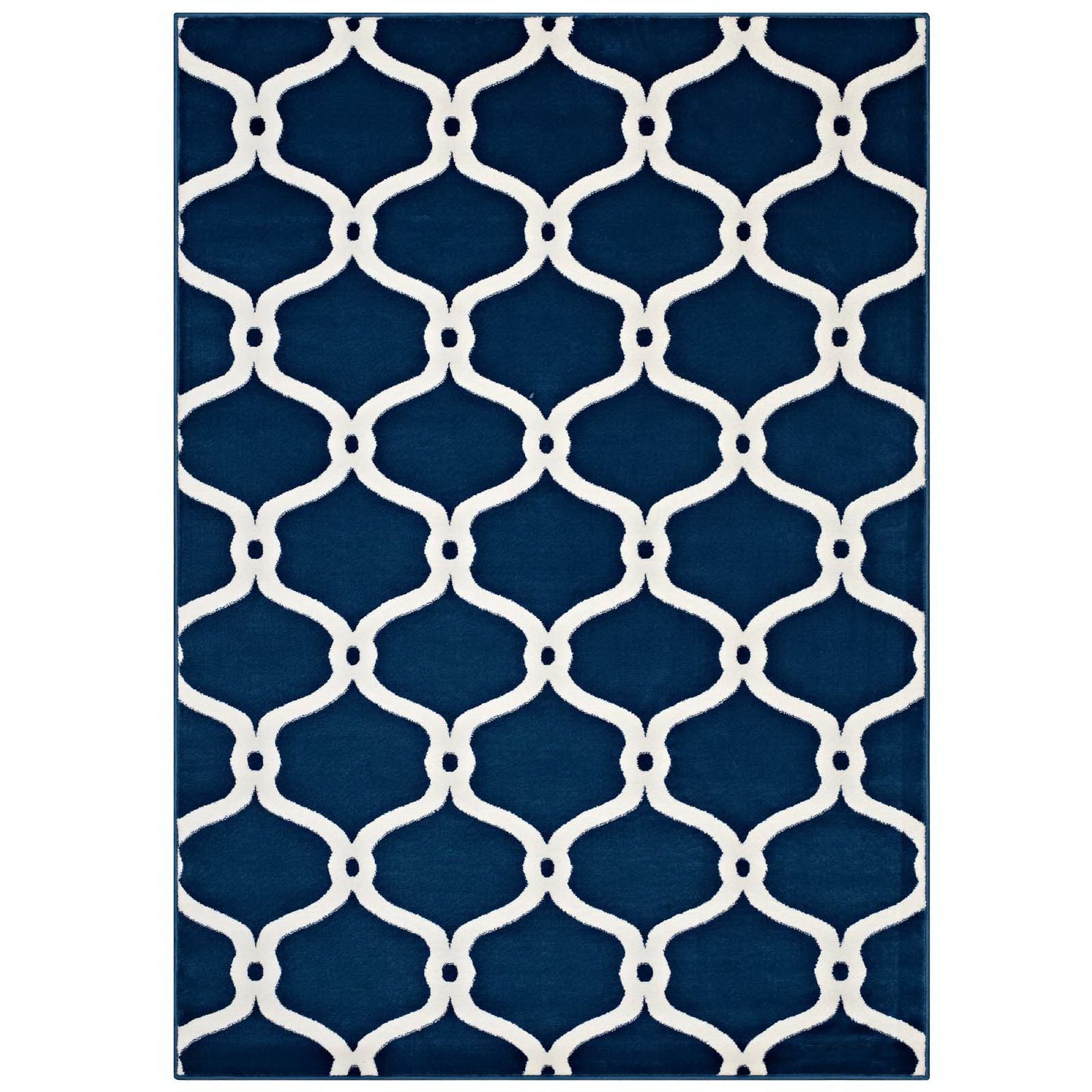 Beltara Chain Link Transitional Trellis 8x10 Area Rug in Moroccan Blue and Ivory