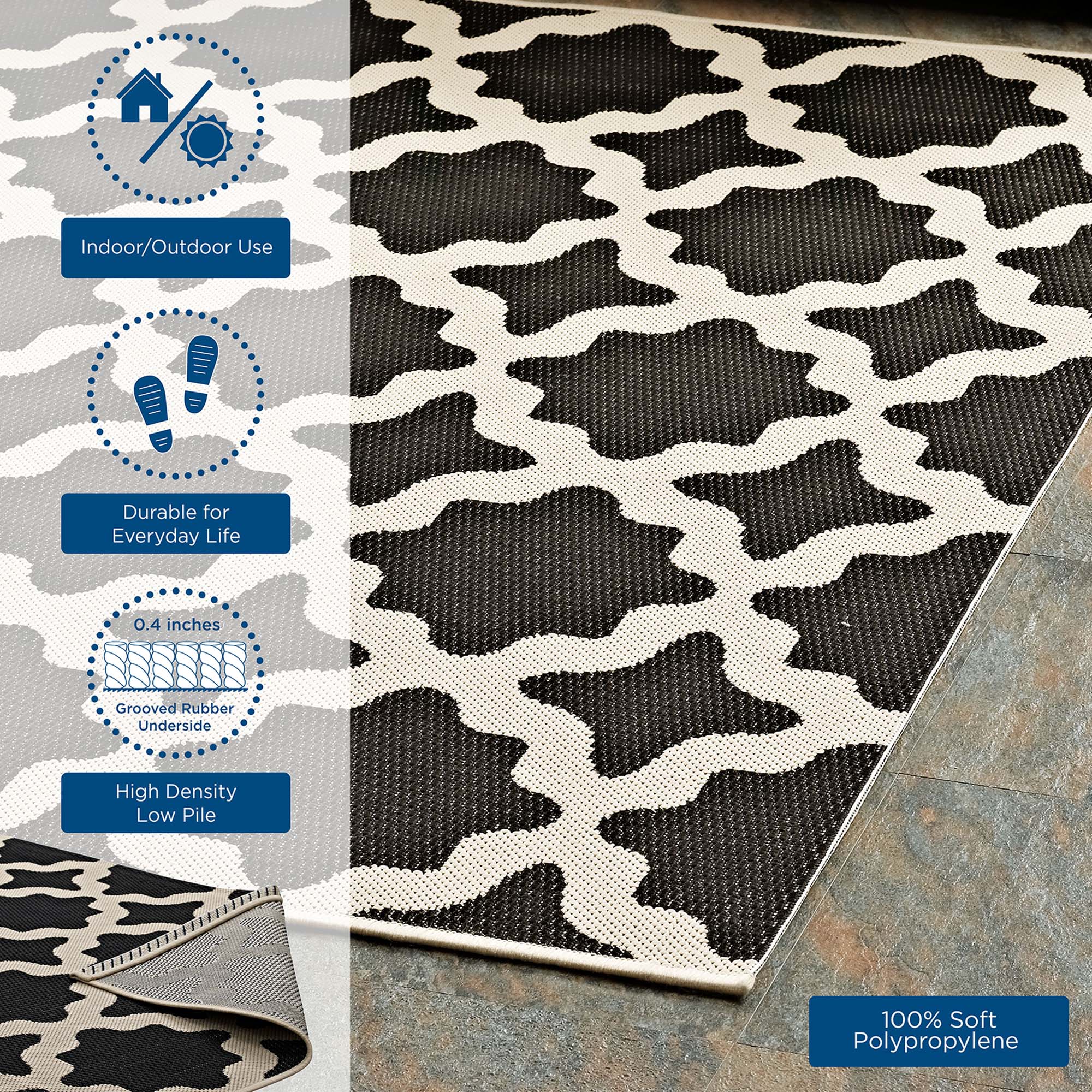 Make a sophisticated statement with the Cerelia Moroccan Trellis Indoor and Outdoor Area Rug. Patterned with an elegant design, Cerelia is a durable and soft machine-woven polypropylene rug that offers wide-ranging support. Featuring an eight-point star design with a low pile weave and gripping rubber bottom, this all-weather area rug is a perfect addition to the outdoor patio, porch, deck, or inside the house in the living room, bedroom, kitchen, or dining room. Cerelia is a family-friendly, fade and stain resistant rug with easy maintenance. Hose down or vacuum periodically. Create a contemporary play area for kids and pets in high-traffic areas while protecting your floor from spills and heavy furniture with this carefree decor solution.