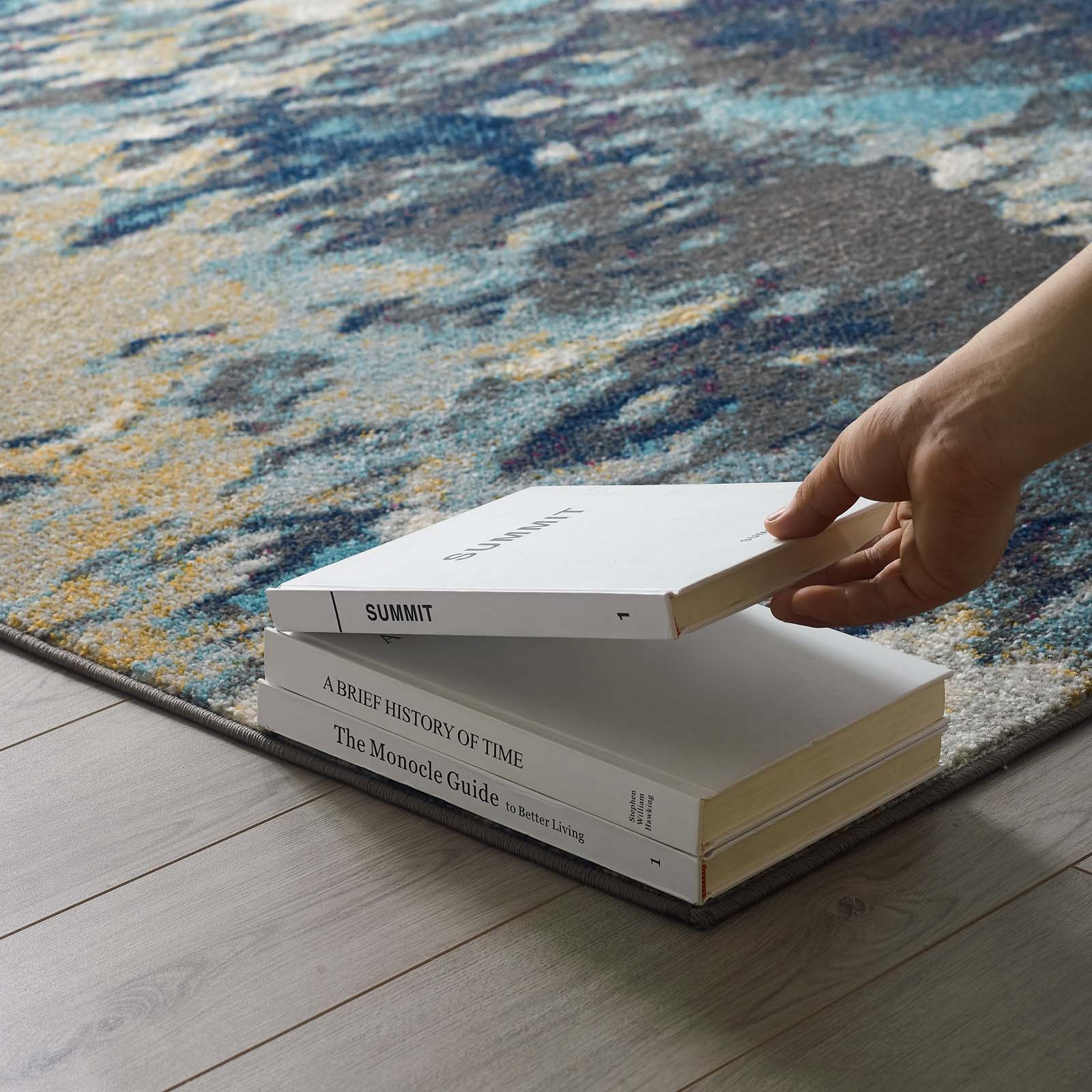 Make a sophisticated statement with the Foliage Contemporary Modern Abstract Area Rug from the Entourage Collection. Patterned with a vibrant abstract design, Foliage is a durable machine-woven frise polypropylene rug. Complete with a durable rubber bottom, Foliage enhances traditional and contemporary modern decors while outlasting everyday use. Featuring a striking abstract design with a high density low pile weave and subtle distressed effect, this non-shedding area rug is a perfect addition to the living room, bedroom, entryway, kitchen, dining room or family room. Foliage is a family-friendly stain resistant rug with easy maintenance. Vacuum regularly and spot clean with diluted soap or detergent as needed. Create a comfortable play area for kids and pets while protecting your floor from spills and heavy furniture with this carefree decor update for high traffic areas of your home.