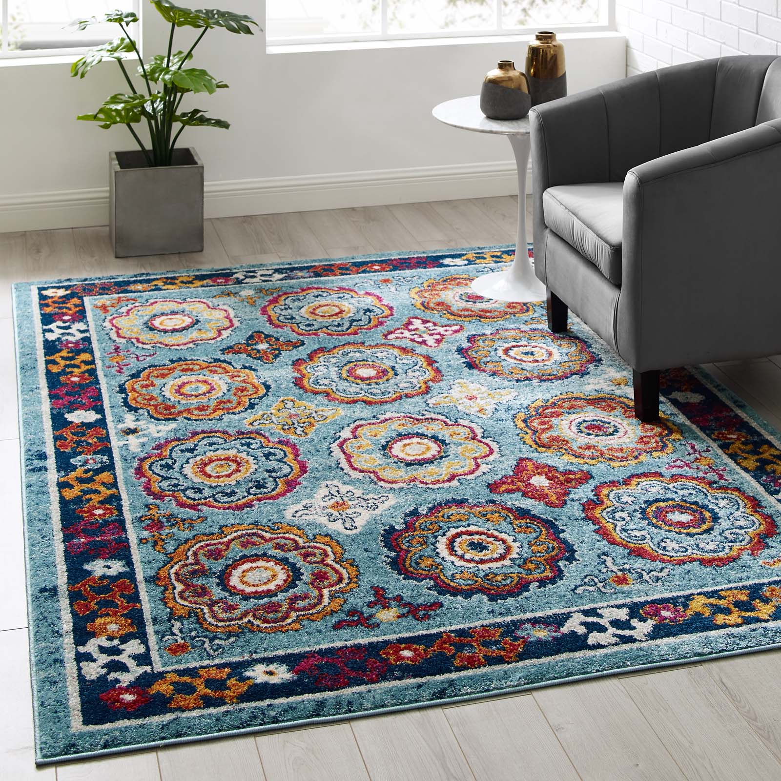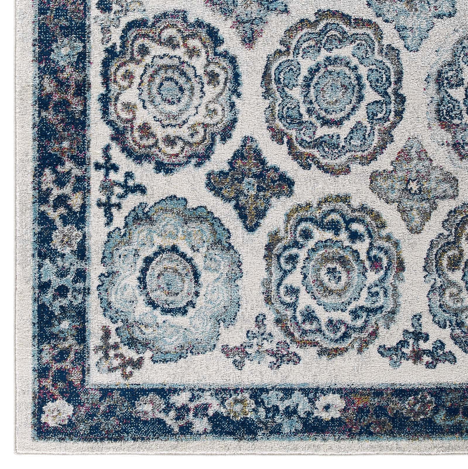 Entourage Odile Distressed Floral Moroccan Trellis 8x10 Area Rug in Blue Red Orange Yellow