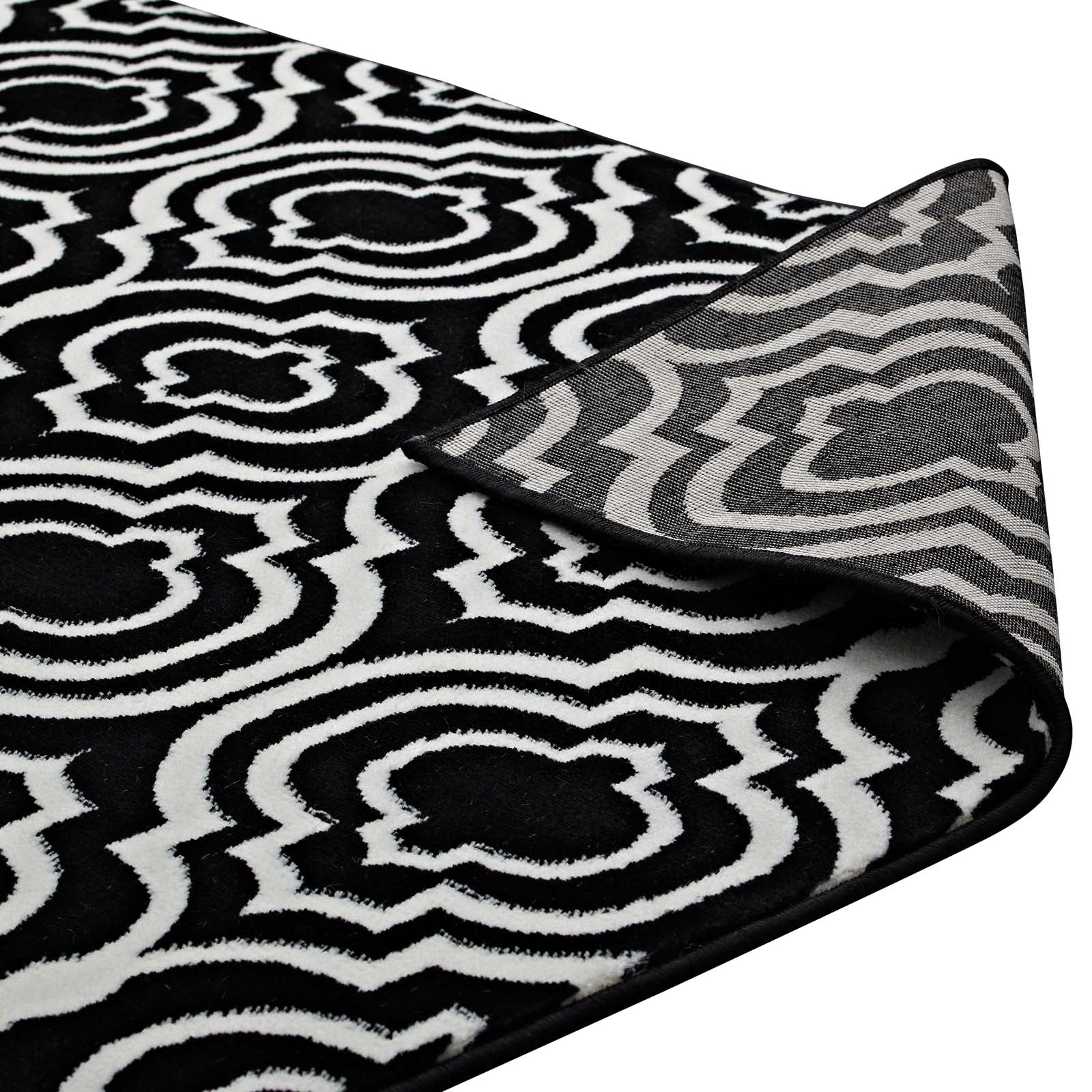 Frame Transitional Moroccan Trellis 5x8 Area Rug in Black and White