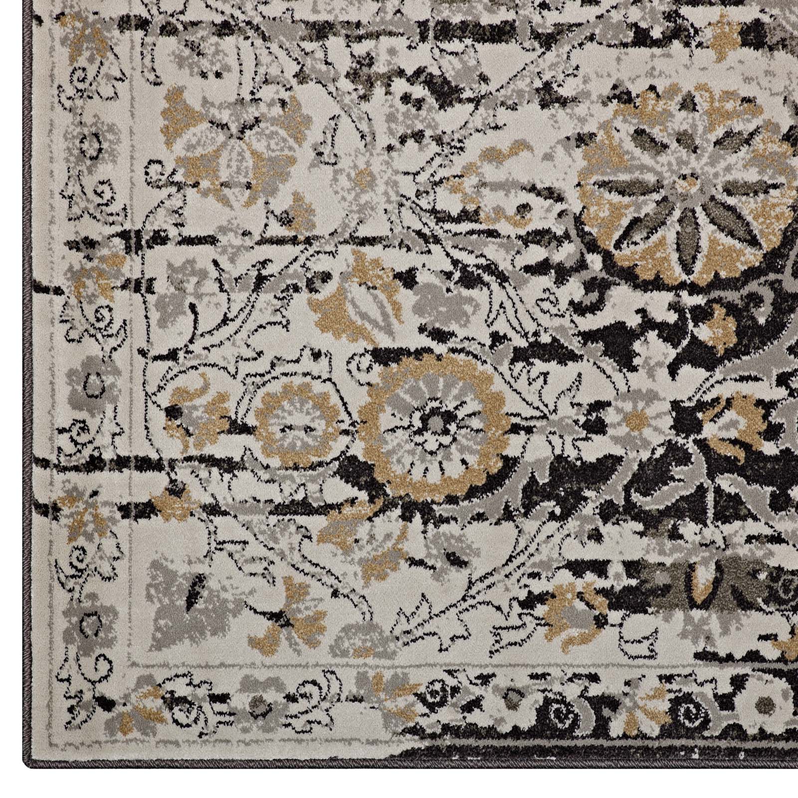 Ganesa Distressed Diamond Floral Lattice 5x8 Area Rug in Black and Beige
