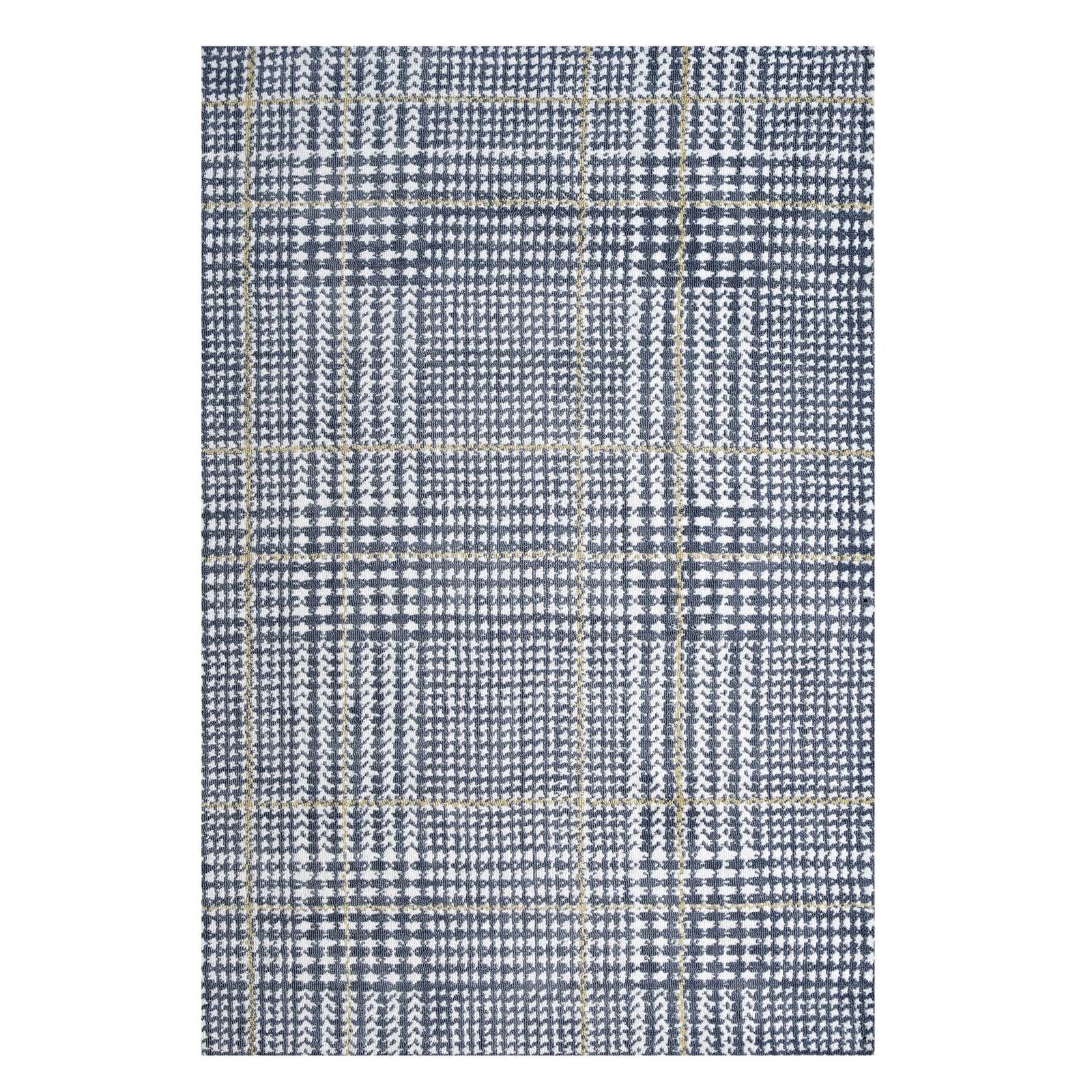 Kaja Abstract Plaid 5x8 Area Rug in Ivory Cadet Blue and Citron