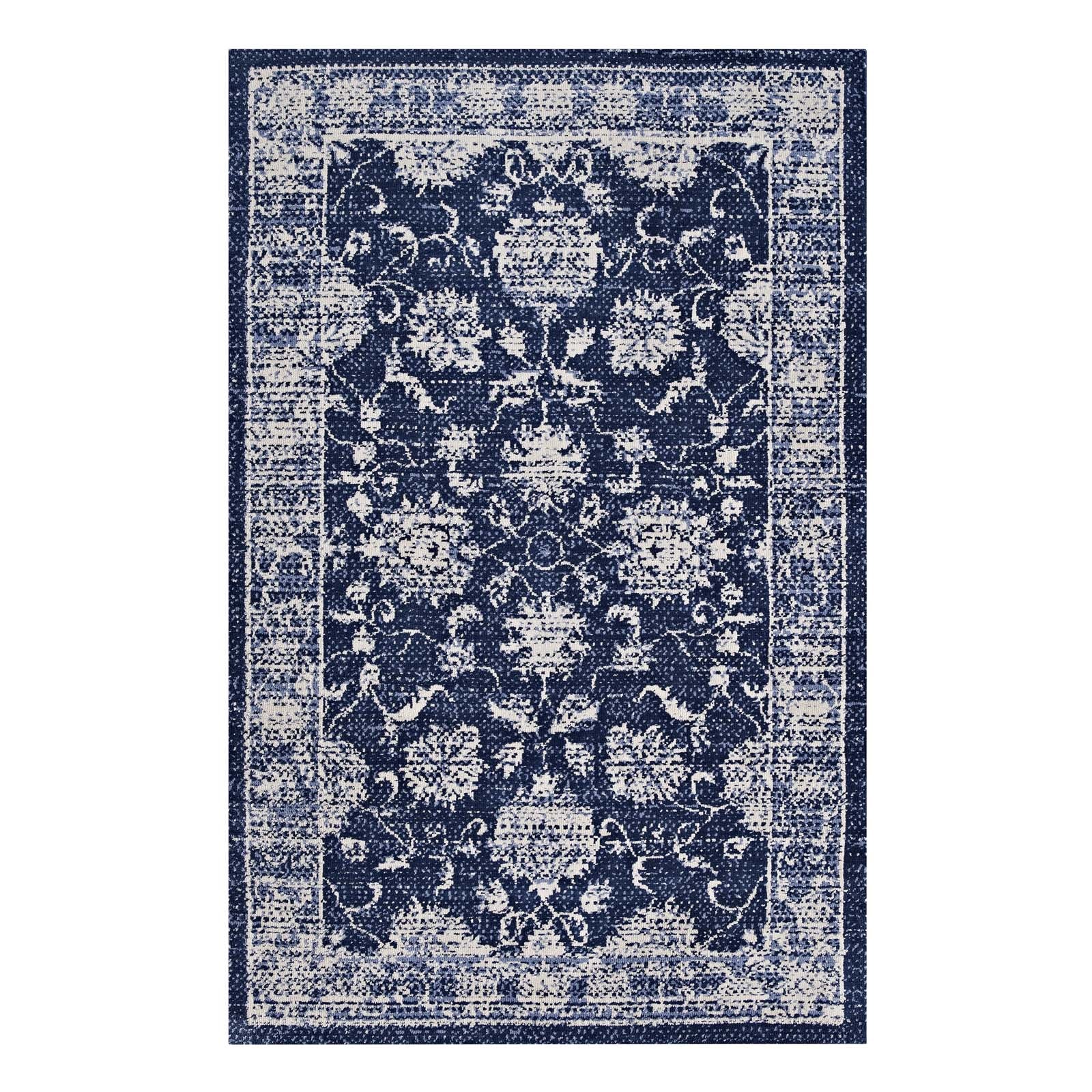 Kazia Distressed Floral Lattice 5x8 Area Rug in Dark Blue and Ivory