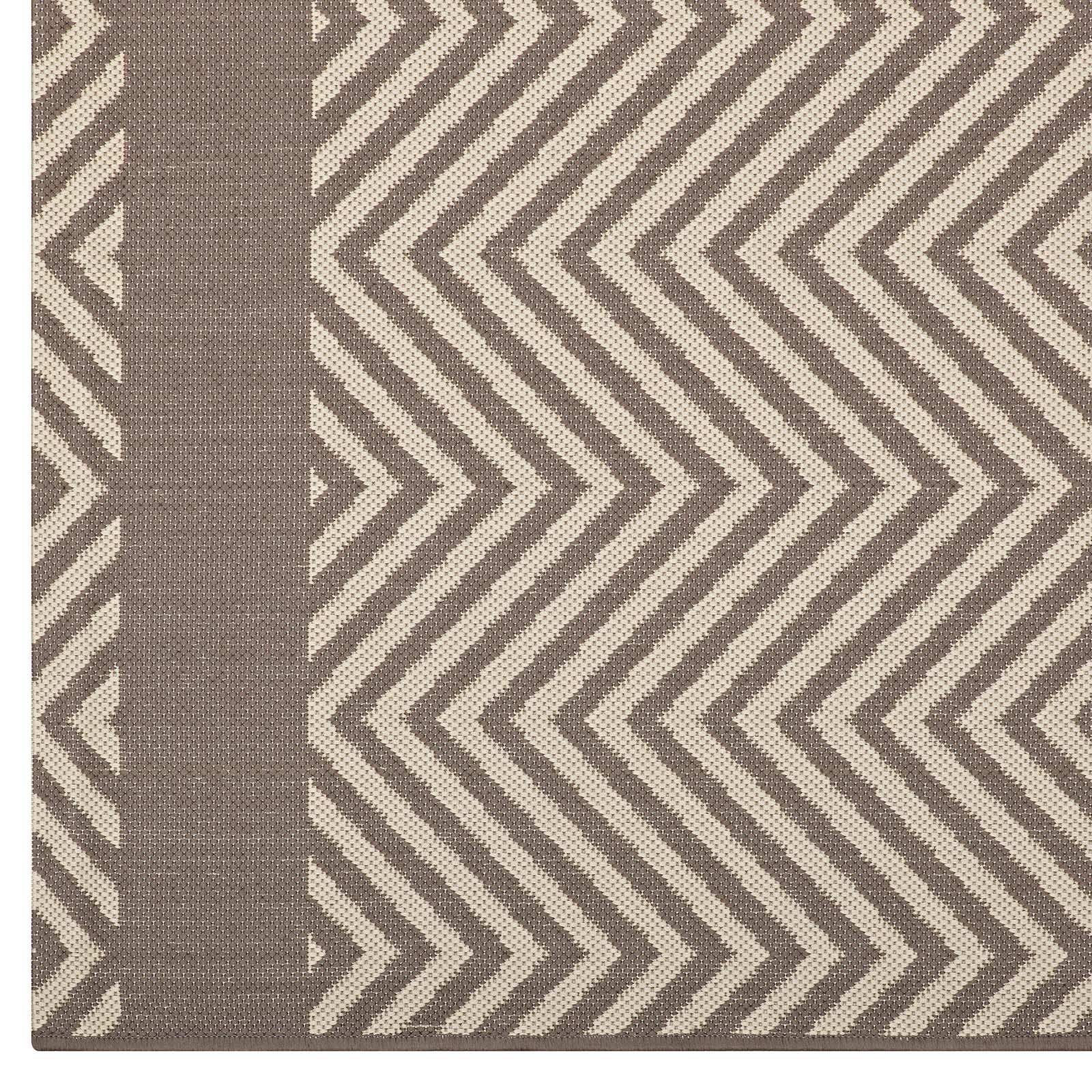 Optica Chevron With End Borders Indoor and Outdoor 5x8 Area Rug in Light and Dark Beige