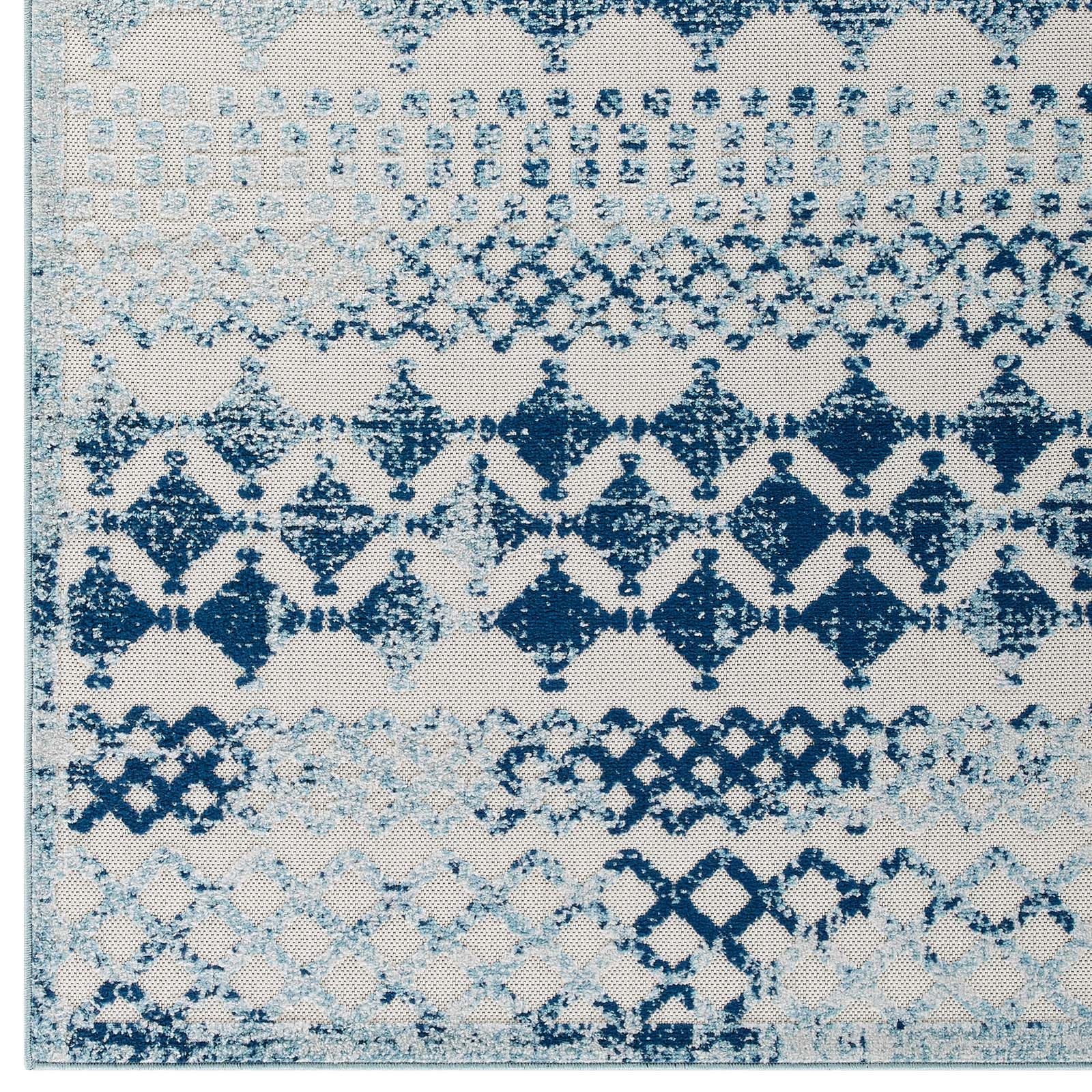 Reflect Giada Abstract Diamond Moroccan Trellis 5x8 Indoor/Outdoor Area Rug in Ivory and Blue