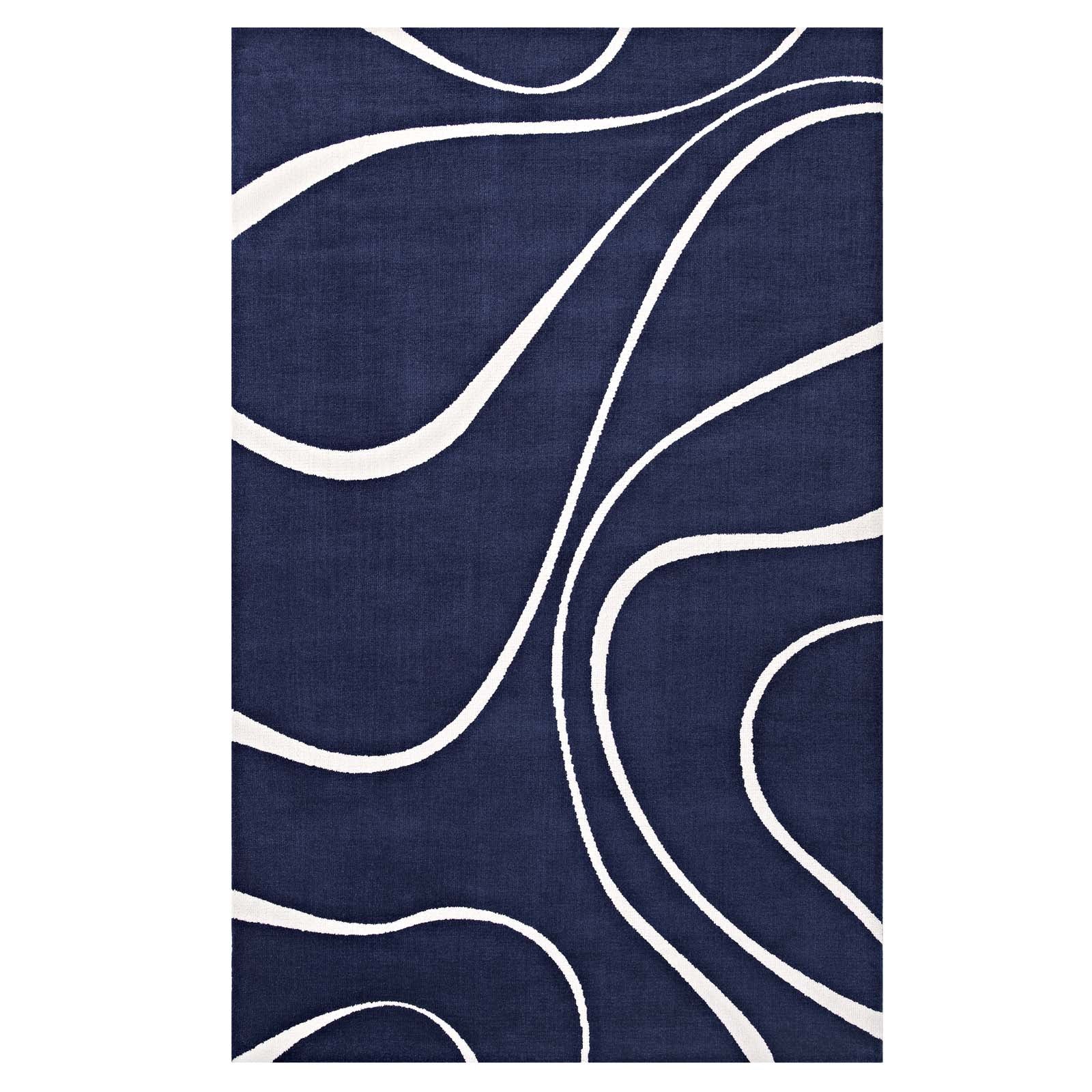 Therese Abstract Swirl 5x8 Area Rug in Navy and Ivory