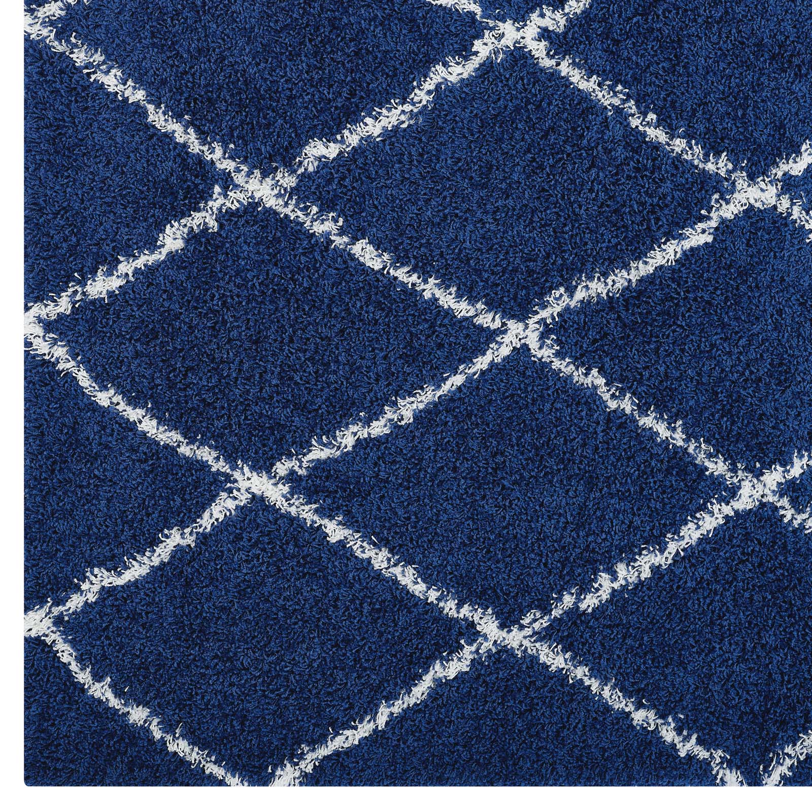 Toryn Diamond Lattice 5x8 Shag Area Rug in Navy and Ivory