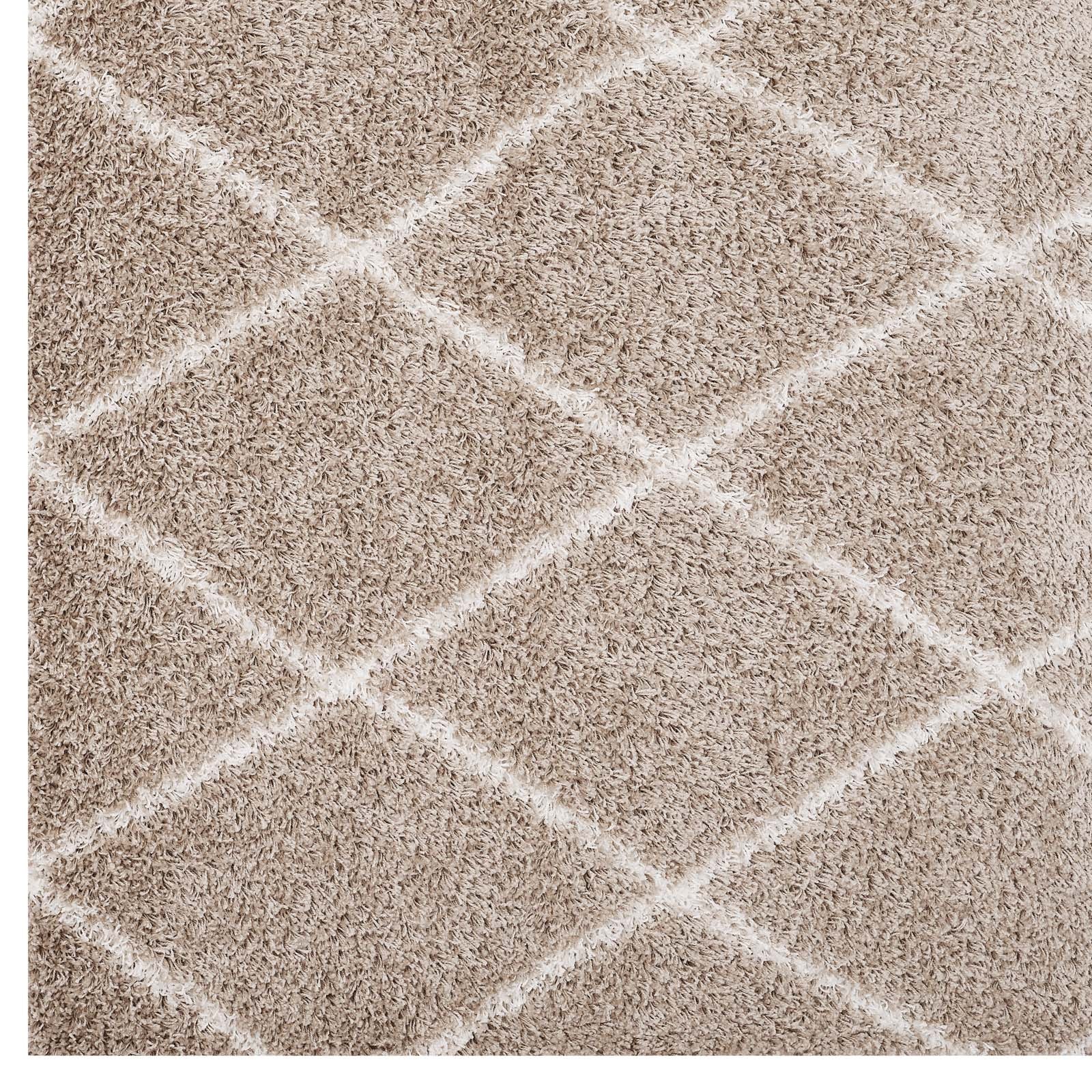Make a sophisticated statement with the Toryn Diamond Trellis Shag Area Rug. Patterned with an elegant lattice design, Toryn is a durable machine-woven polypropylene rug. Complete with a jute bottom, Toryn enhances traditional and contemporary modern decors while outlasting everyday use. Featuring a stylish trellis design with a shag high pile weave of approximately two inches, this non-shedding, high density area rug is a perfect addition to the living room, bedroom, or family room. Vacuum regularly and spot clean with diluted soap or detergent as needed. Create a comfortable play area for kids and pets while protecting your floor from spills and heavy furniture with this carefree decor update for your home.