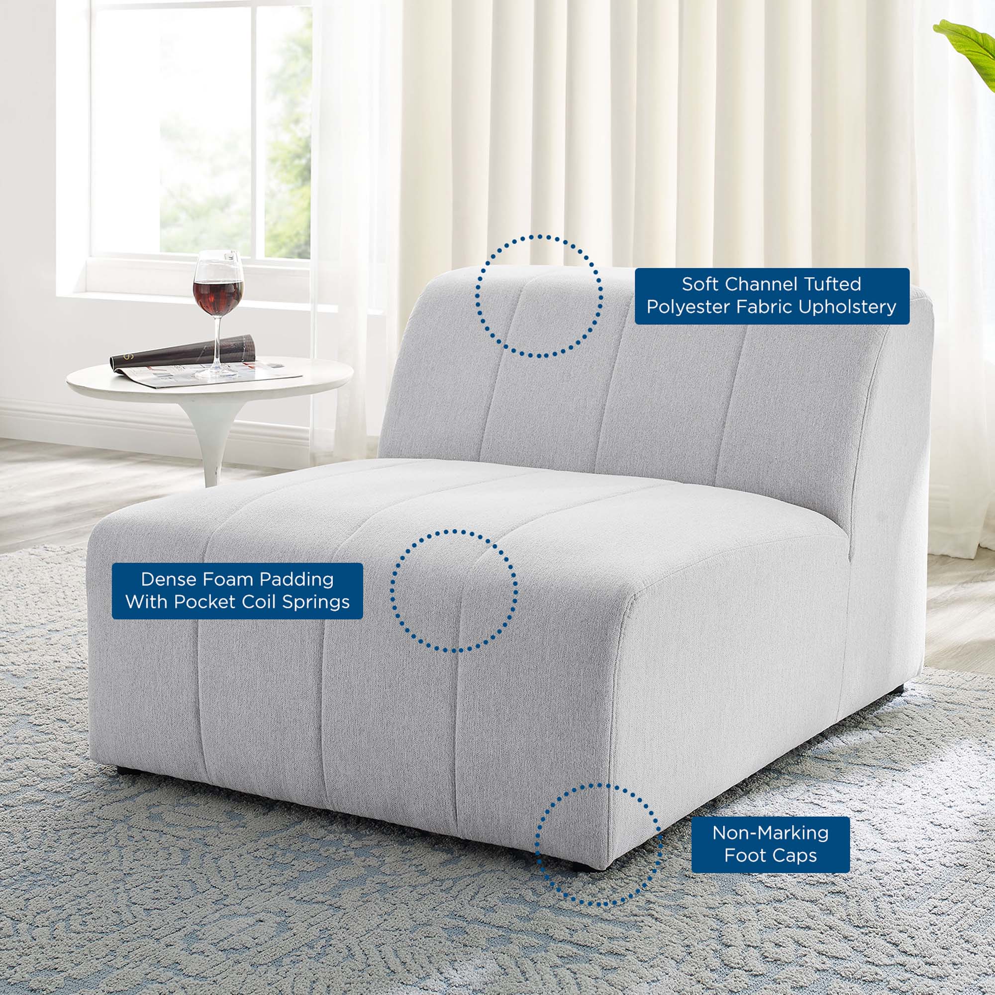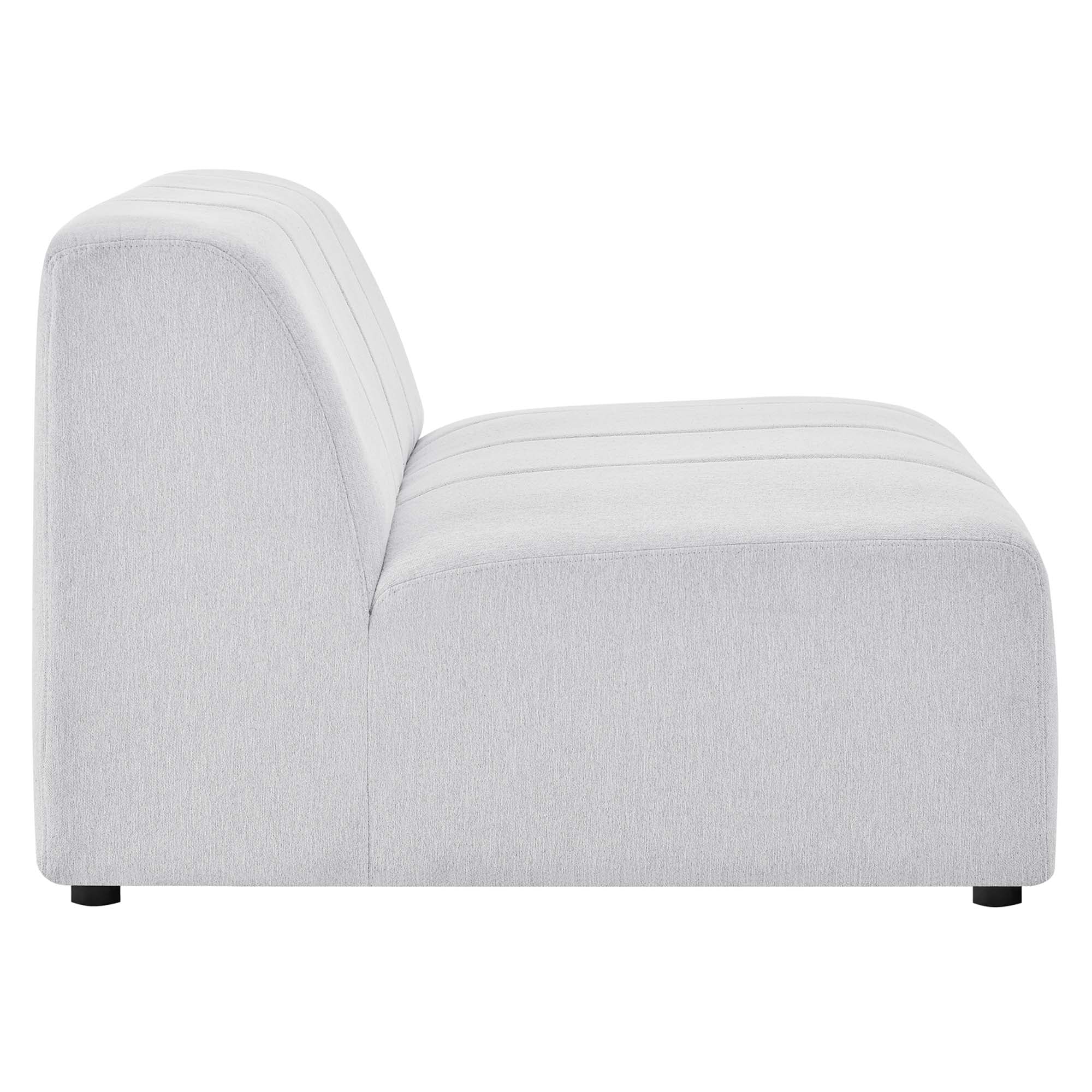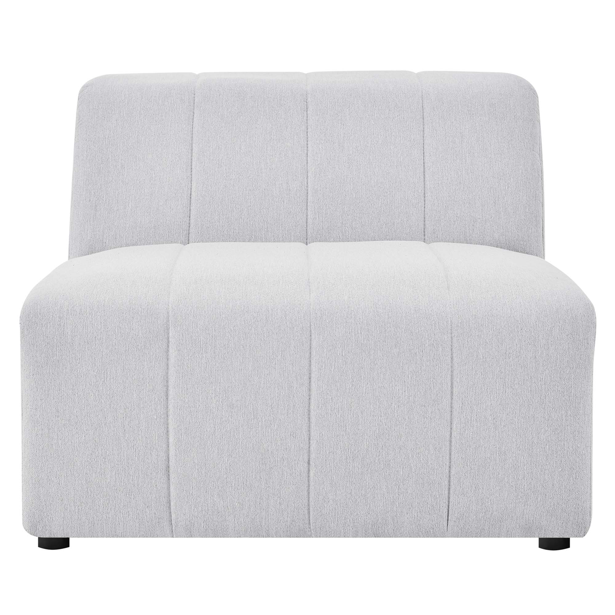 Indulge in comfort and relaxation by creating a custom living room and lounge area with the Bartlett Upholstered Fabric Armless Chair. Featuring subtle channel tufting, rounded corners, and soft polyester fabric upholstery, this armless chair brings retro modern style and contemporary allure to your living space. Dense foam padding and a pocket coil spring system in the cushions offer a luxe seating experience with premium support and comfort. With a sturdy frame crafted from solid wood and plywood, this living room chair features modular connectors to keep each sectional sofa piece secure and non-marking foot caps to protect flooring. Chair Weight Capacity: 331 lbs.