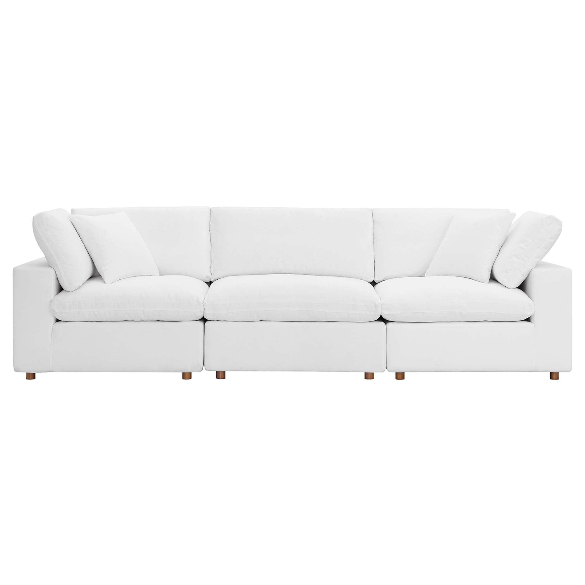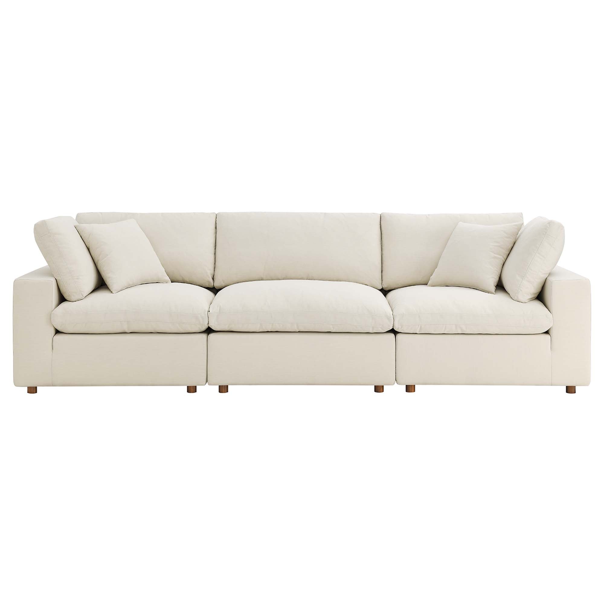 Commix 3 Piece Down Filled Overstuffed Sectional Sofa Set in Light Beige