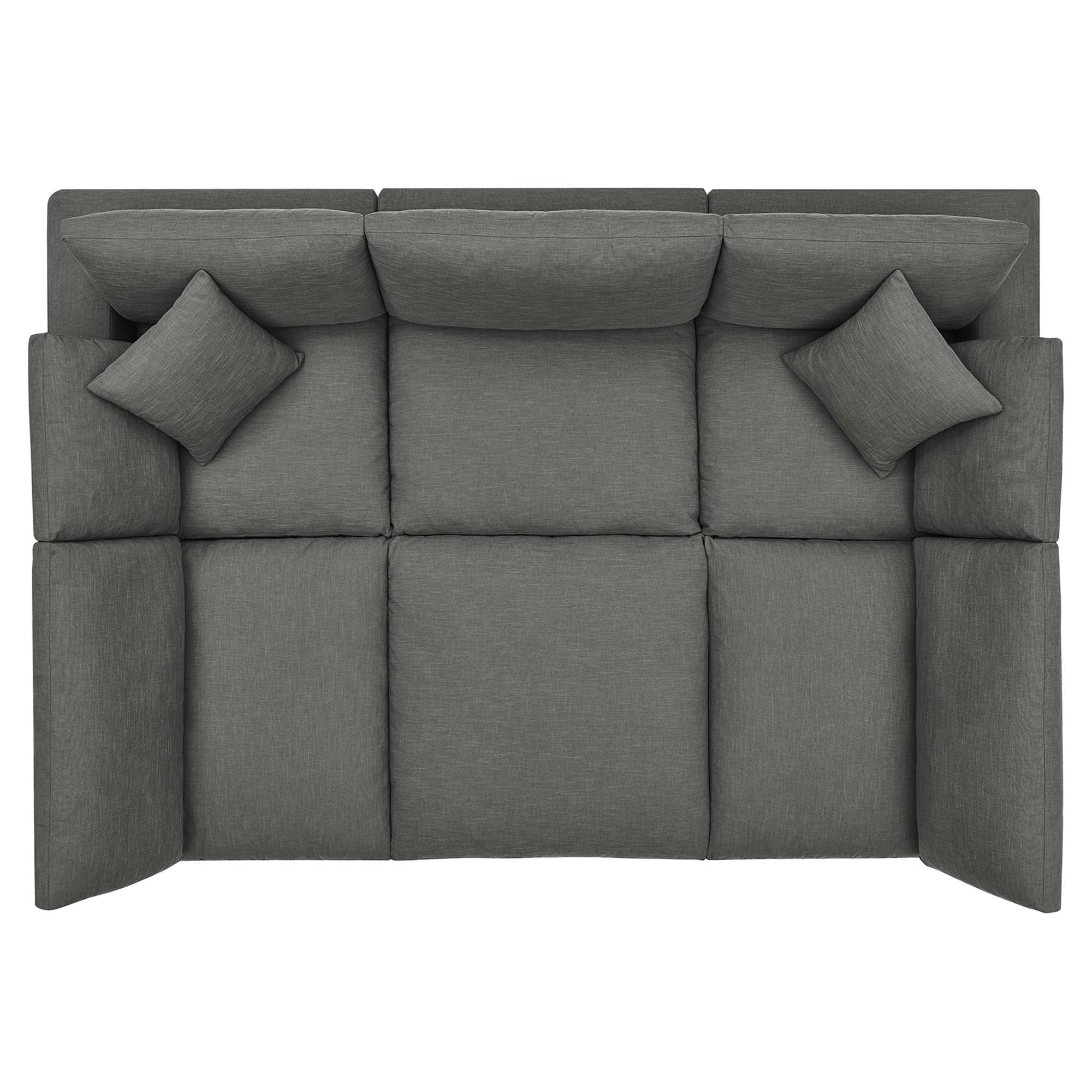A haven for cozy relaxation, Commix features plush comfort, clean-lined design, and spacious profile, that makes an attractive statement in the modern home. Upholstered in polyester fabric that grants a luxe linen texture, this contemporary sectional sofa comes with solid wood construction and cotton and down cushions for a luxurious sink-in feel. Commix comes with generously padded down feather and cotton cushions, and padded foam bases, making this sectional sofa collection perfect for the living room, family room, or game room. Made for sprawling out or curling up, Commix beckons you and guests to sit and stay a while. Includes plastic foot glides. Corner piece includes two back pillows and a throw pillow. Each Seat Weight Capacity: 331 lbs.