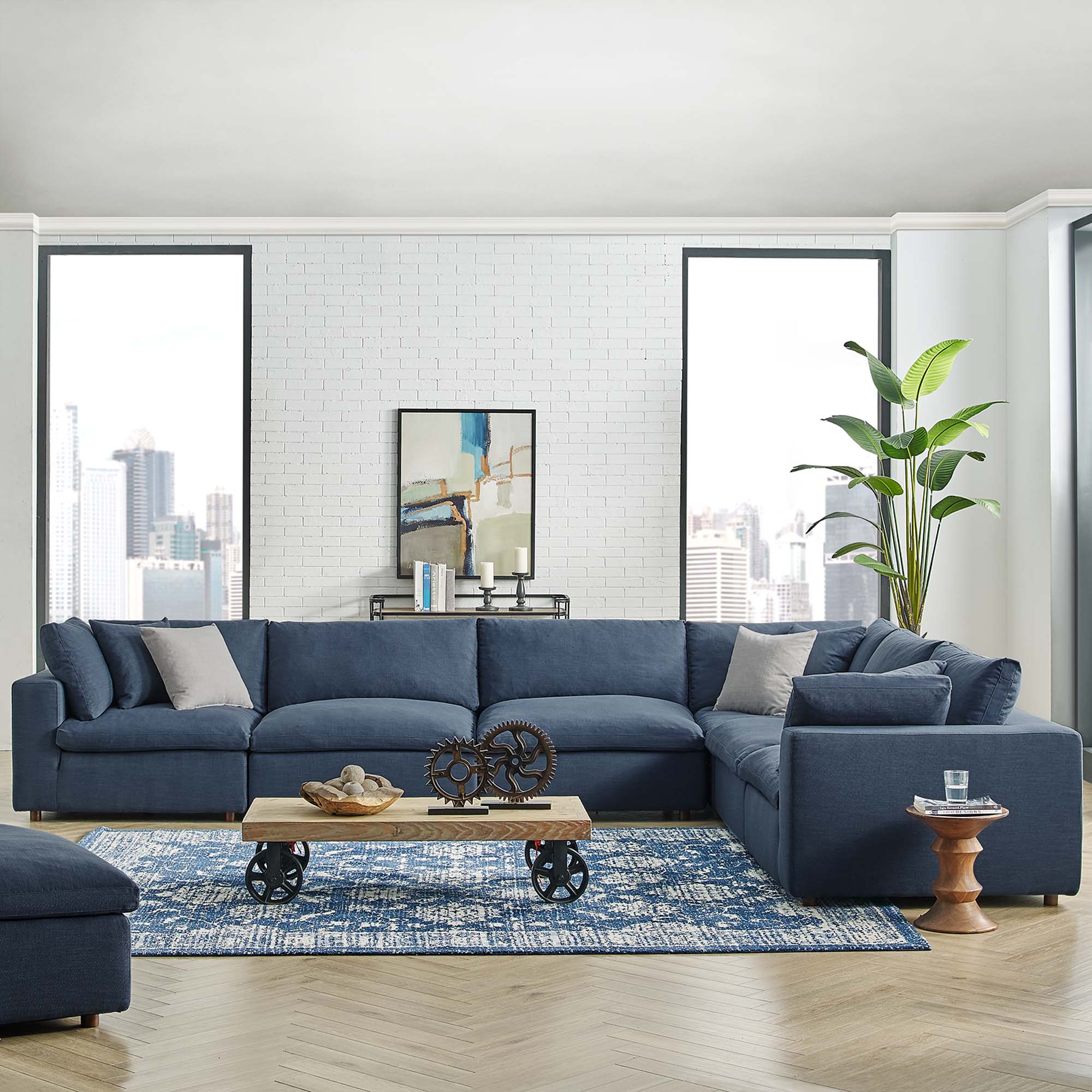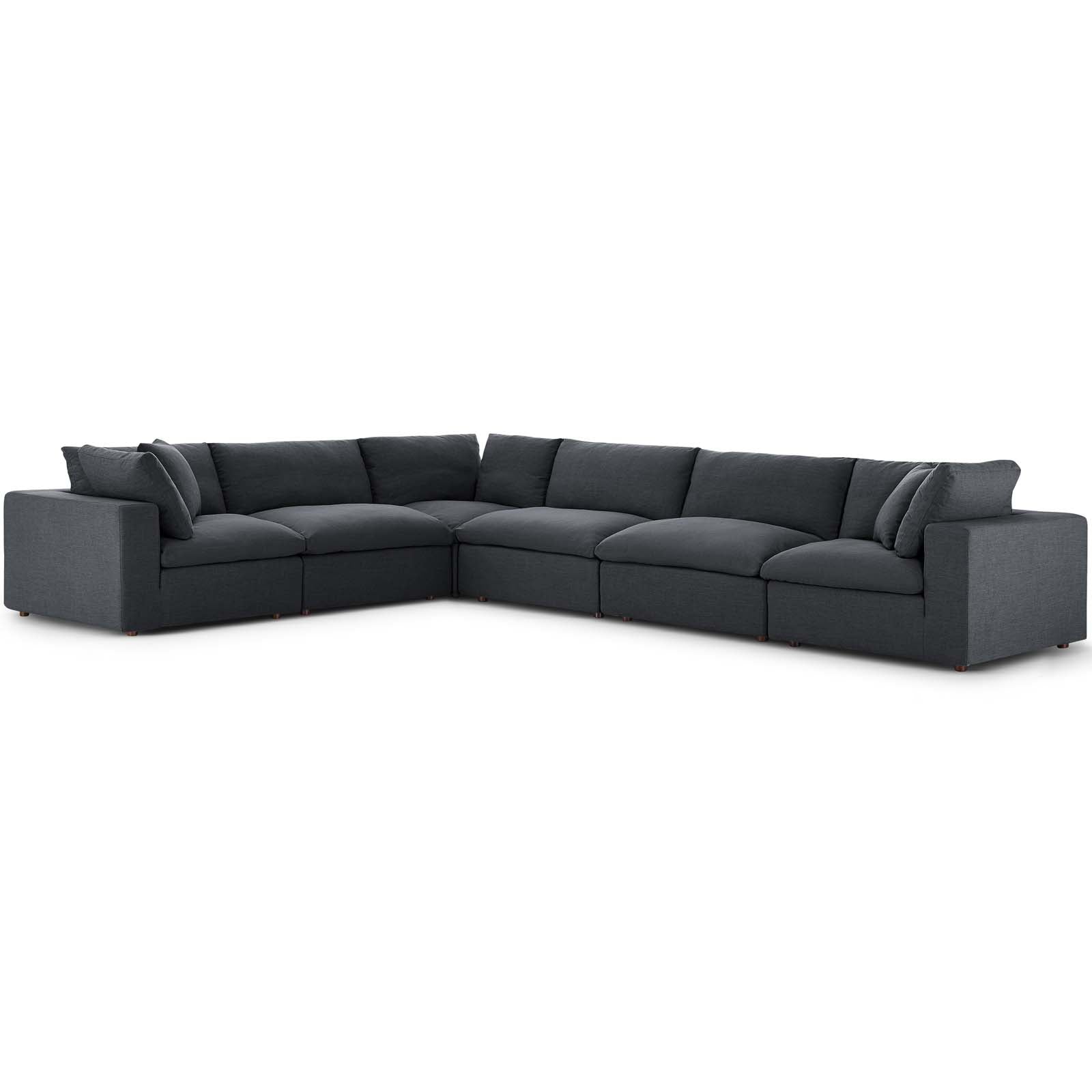 Commix 6 Piece Down Filled Overstuffed Sectional Sofa Set in Light Beige