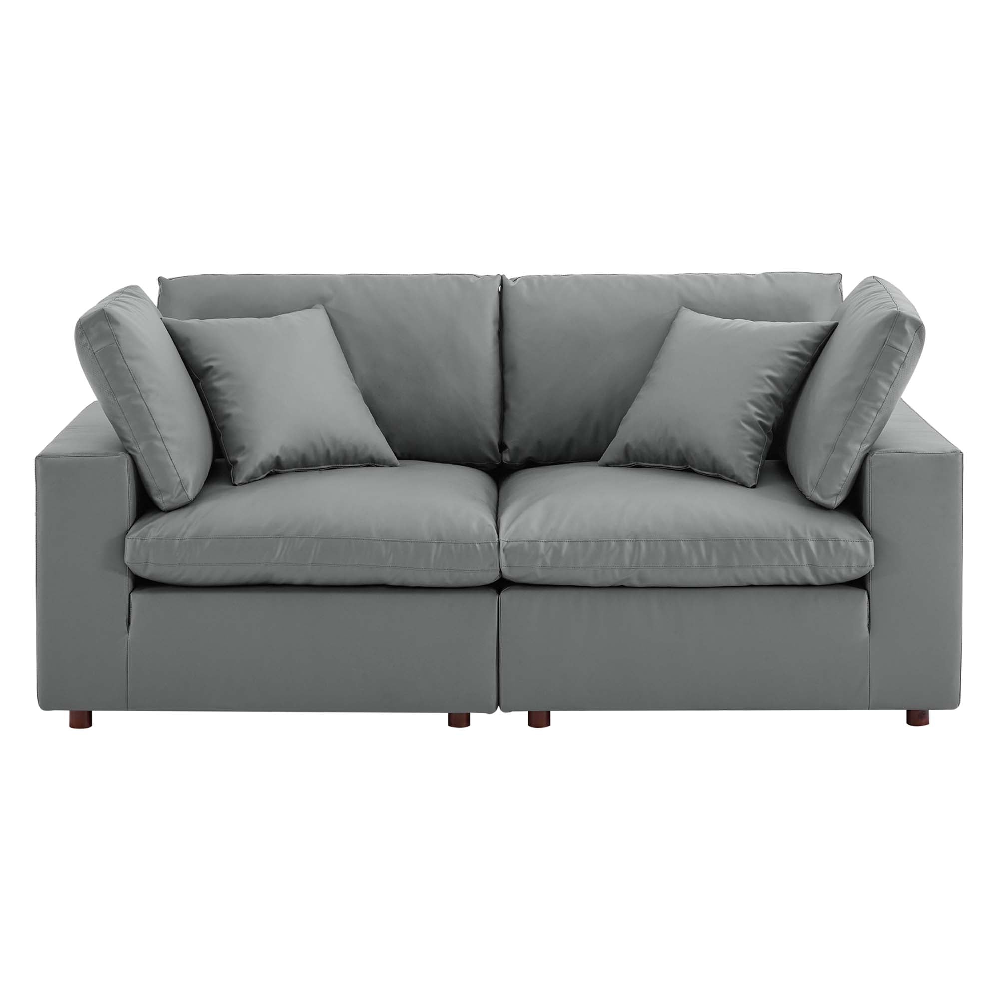 Commix Down Filled Overstuffed Vegan Leather Loveseat in Gray
